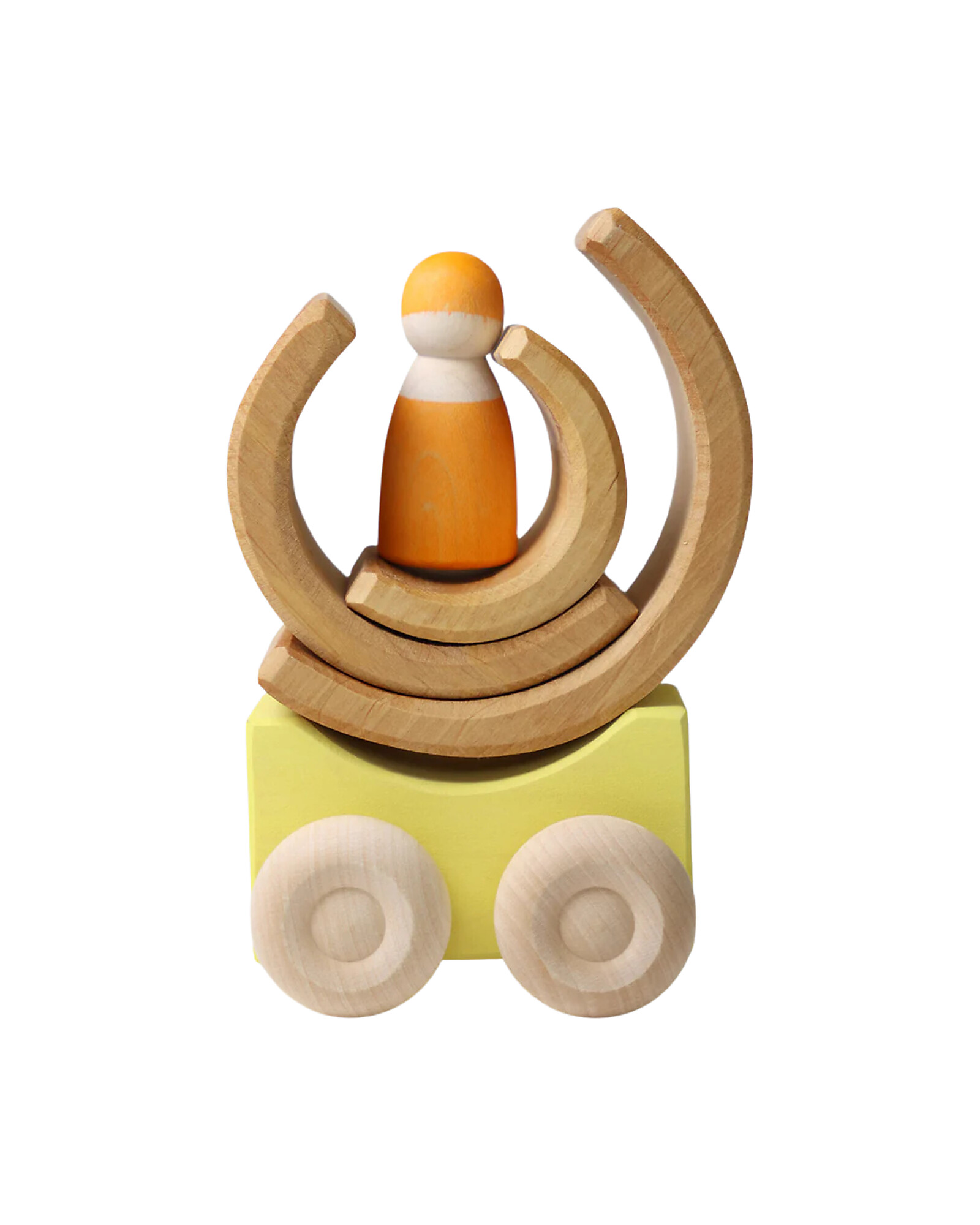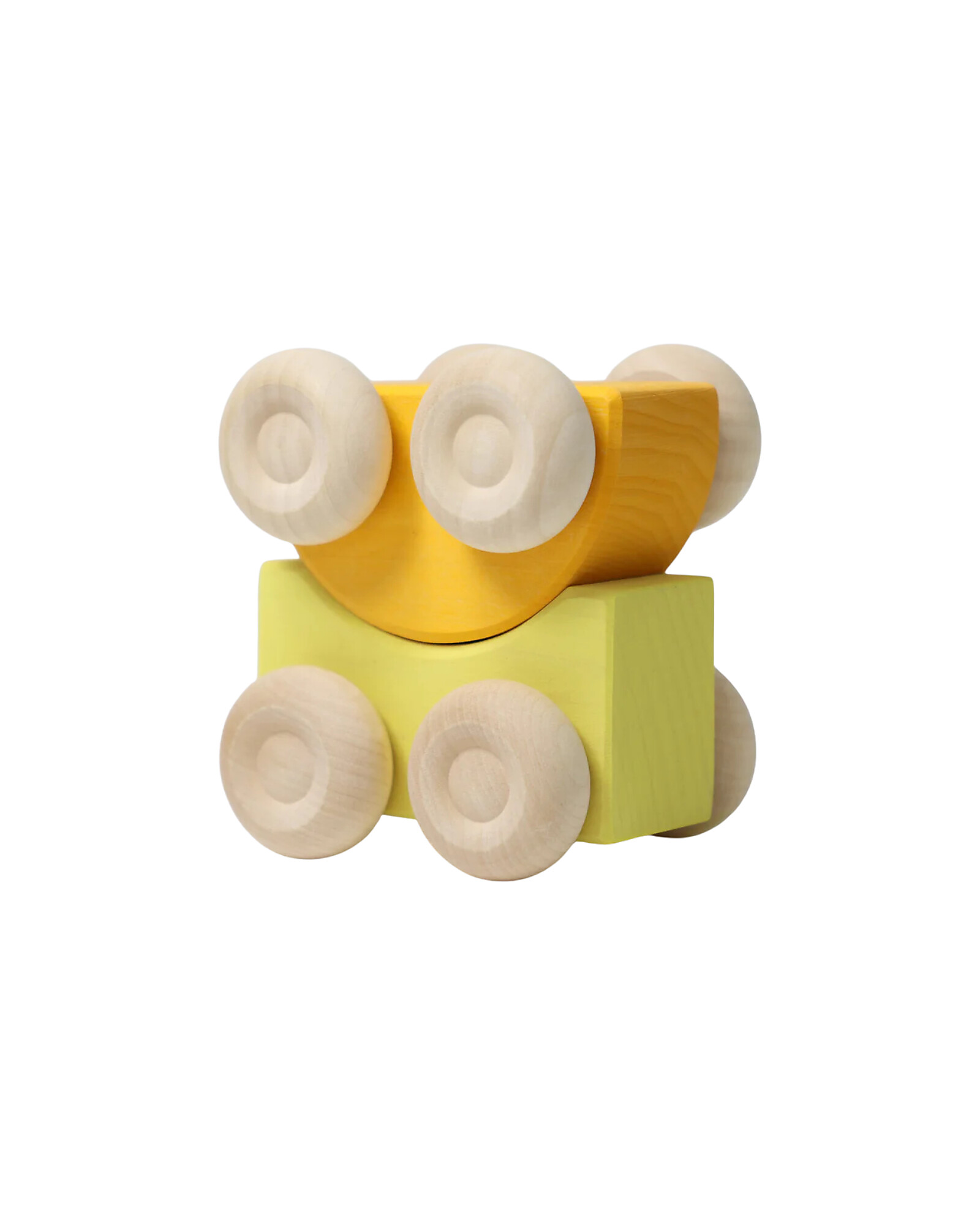 Le nostre Stacking Cars sono molto più di semplici giocattoli: sono un invito a vivere l'avventura con fantasia. Ogni macchina può impilarsi con le altre, creando spettacolari torri in movimento, oppure sfrecciare veloce su qualsiasi superficie grazie alle sue ruote levigate. I bambini possono anche costruirci sopra, trasformandole in veicoli unici e personalizzati. I colori vivaci e le forme diverse insegnano in modo naturale l’armonia cromatica e il concetto di associazione tra forme. Realizzate in legno di tiglio colorato e ruote in legno d’acero, offrono una sensazione calda e autentica al tatto. Un gioco semplice, ma pieno di magia e potenziale creativo.
