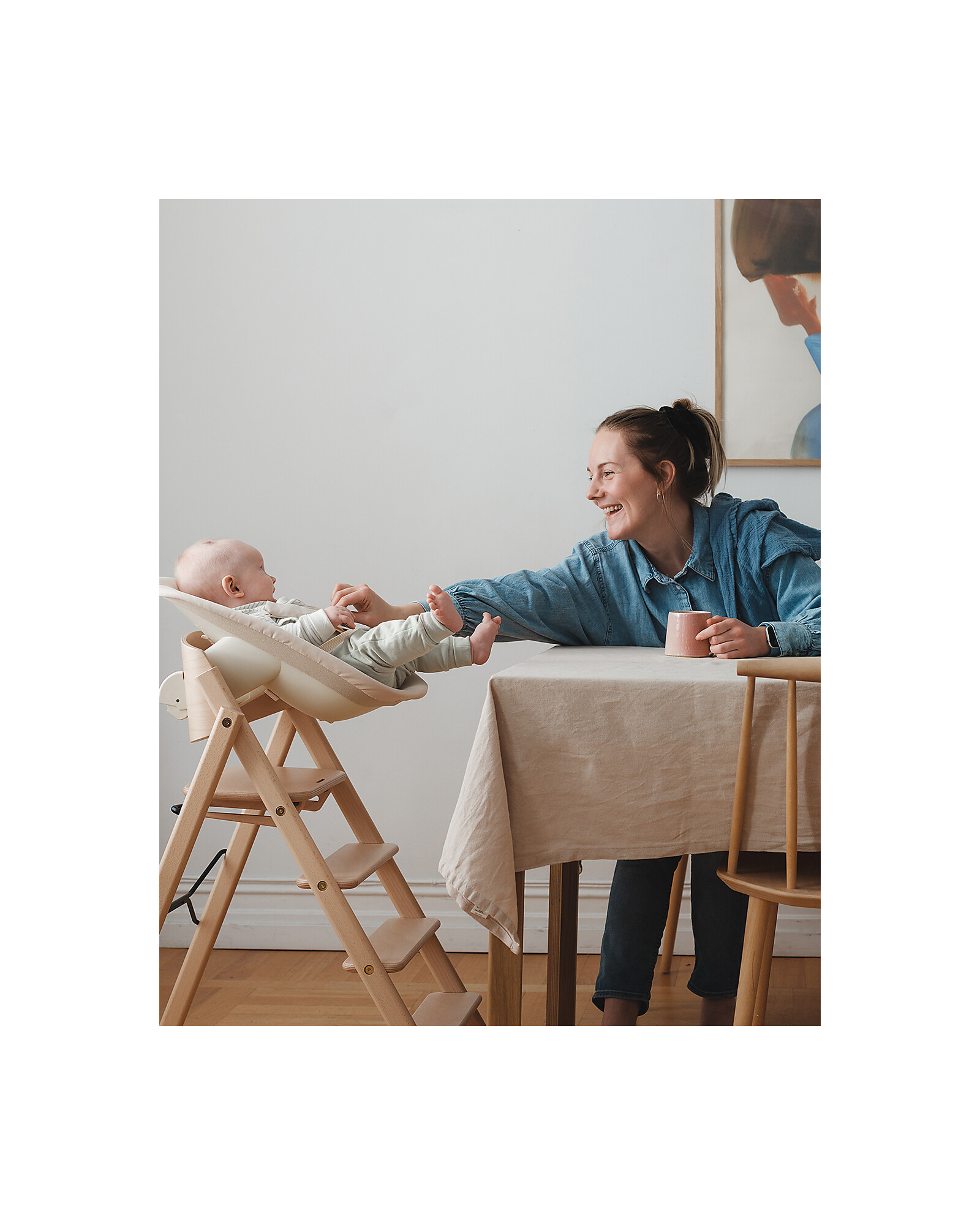 Questa Sdraietta per Neonato trasforma il tuo seggiolone KLAPP® in un accogliente spazio sicuro per il tuo bambino fin dalla nascita. Pensato per bimbi fino ai 9 kg, permette al neonato di partecipare ai pasti in famiglia con comodità e sicurezza. Il sedile è dotato di una cintura a 5 punti regolabile e di un cuscino imbottito lavabile, che garantiscono comfort e praticità. I piedini anti-scivolo inclusi contribuiscono a stabilizzare la seduta e a proteggere il pavimento da graffi.