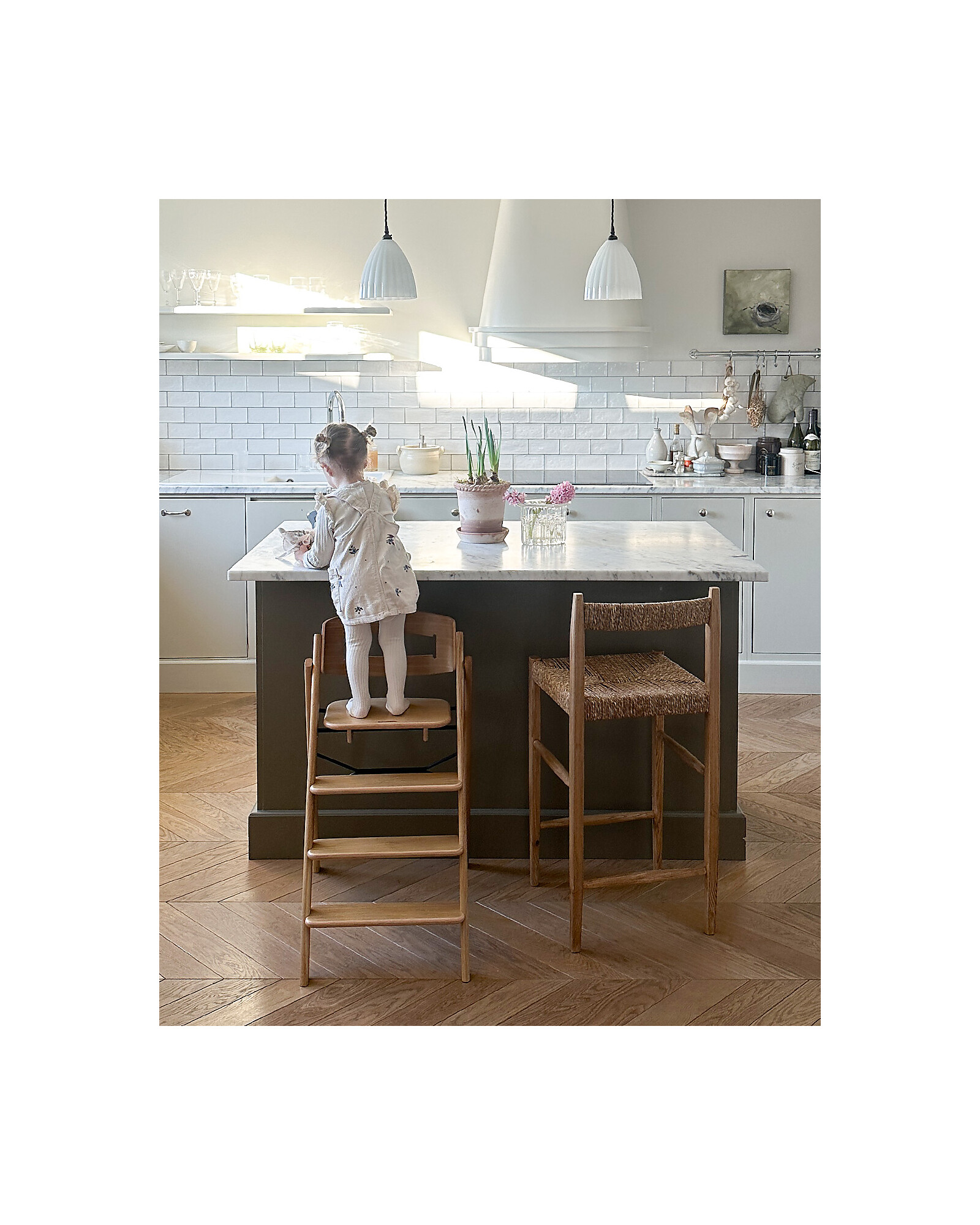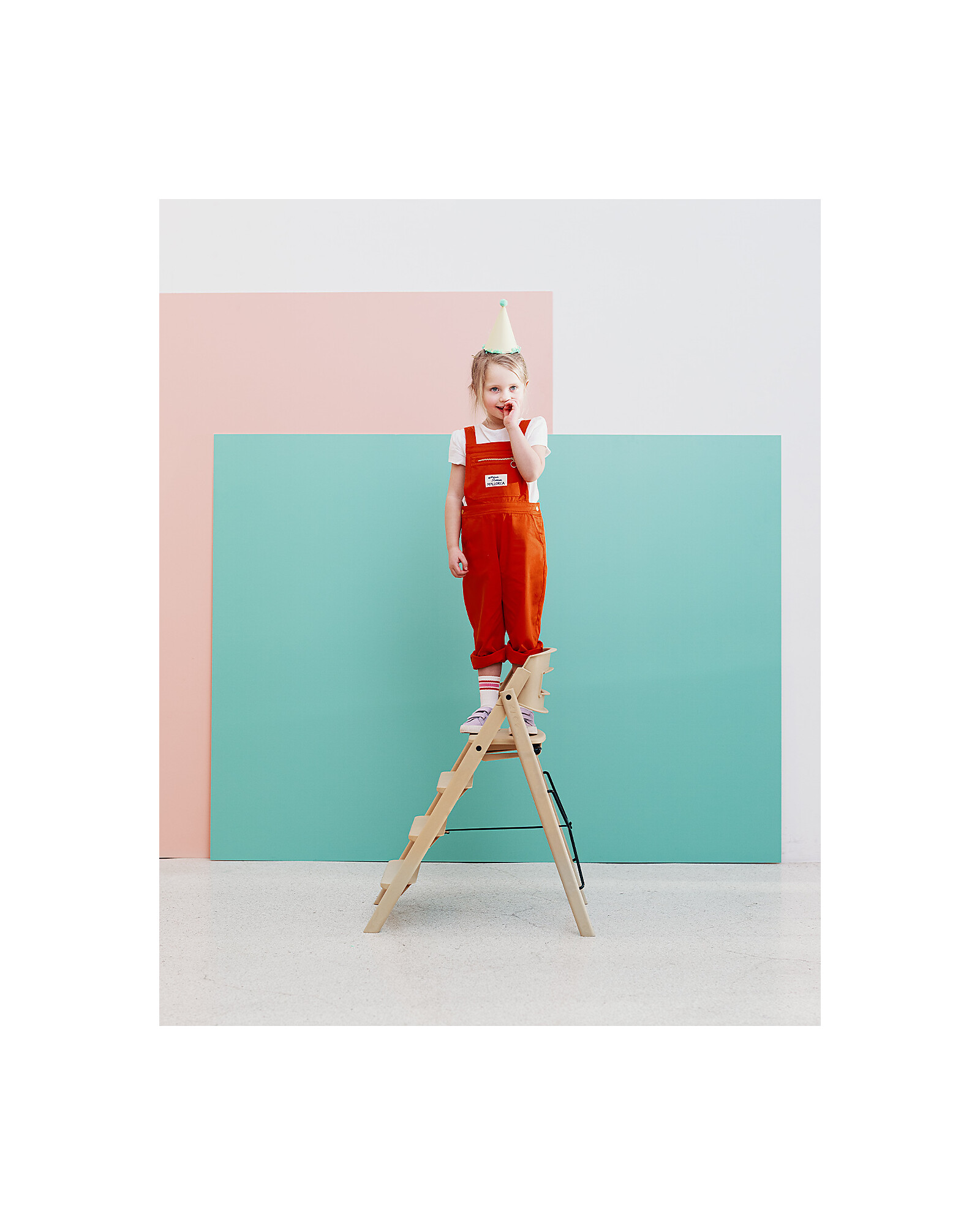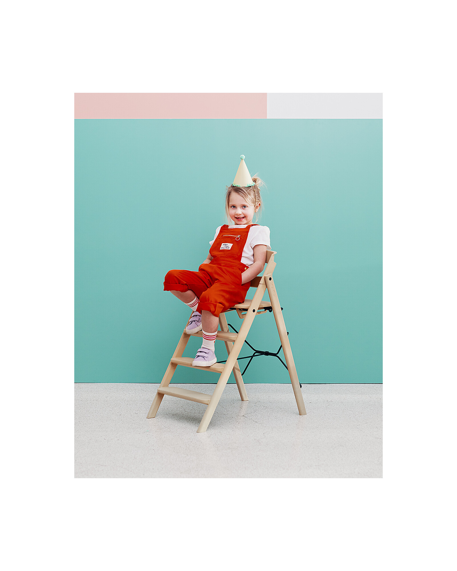 Il seggiolone evolutiva KLAPP® di KAOS unisce design elegante e funzionalità intelligente. Realizzato in legno premium certificato FSC, offre una struttura solida e sostenibile. La sua ispirazione architettonica a una scala permette una seduta ergonomica, con gradini fissi su cui il bambino può salire e scendere in autonomia, favorendo un senso di indipendenza. Il KLAPP® arriva già montato: basta aprirlo, bloccare il sedile, ed è pronto all’uso, senza bisogno di regolazioni. Si richiude in pochi secondi fino a uno spessore di soli 13 cm, ideale per spazi ridotti o per viaggiare. Può essere usata fin dalla nascita con l’aggiunta dell'apposita sdraietta. Altri accessori comprendono anche il Set Sponda di Sicurezza e Vassoio per rendere la sedia evolutiva KLAPP® un perfetto e completo seggiolone prime pappe. Ha una portata massima elevata, potendo così accompagnare il bambino dall’infanzia fino all’età adulta. Le superfici lisce sono facili da pulire con un panno. Il seggiolone è certificato secondo i più alti standard, garantendo sicurezza e qualità.