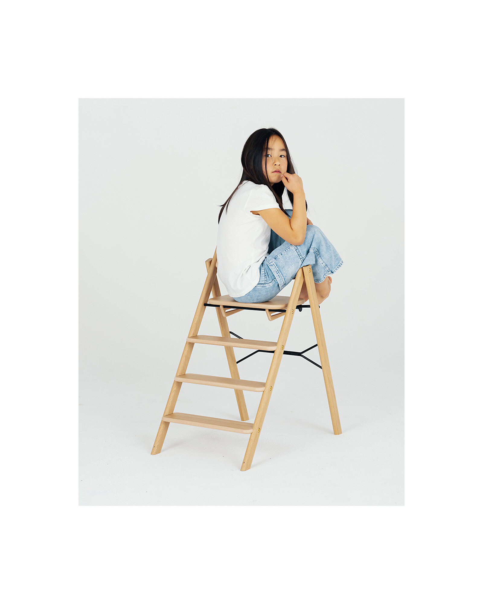 Il seggiolone evolutiva KLAPP® di KAOS unisce design elegante e funzionalità intelligente. Realizzato in legno premium certificato FSC, offre una struttura solida e sostenibile. La sua ispirazione architettonica a una scala permette una seduta ergonomica, con gradini fissi su cui il bambino può salire e scendere in autonomia, favorendo un senso di indipendenza. Il KLAPP® arriva già montato: basta aprirlo, bloccare il sedile, ed è pronto all’uso, senza bisogno di regolazioni. Si richiude in pochi secondi fino a uno spessore di soli 13 cm, ideale per spazi ridotti o per viaggiare. Può essere usata fin dalla nascita con l’aggiunta dell'apposita sdraietta. Altri accessori comprendono anche il Set Sponda di Sicurezza e Vassoio per rendere la sedia evolutiva KLAPP® un perfetto e completo seggiolone prime pappe. Ha una portata massima elevata, potendo così accompagnare il bambino dall’infanzia fino all’età adulta. Le superfici lisce sono facili da pulire con un panno. Il seggiolone è certificato secondo i più alti standard, garantendo sicurezza e qualità.