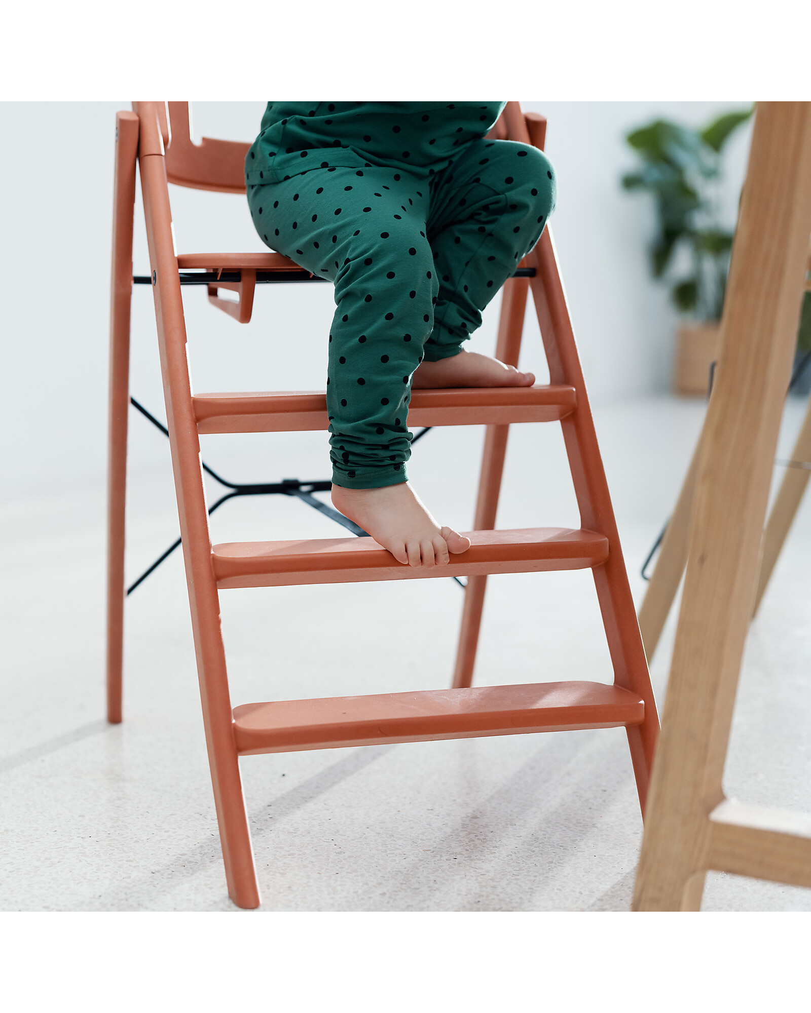 Il seggiolone evolutiva KLAPP di KAOS unisce design elegante e funzionalità intelligente. Realizzato in materiali 100% riciclati, offre una struttura solida e sostenibile. La sua ispirazione architettonica a una scala permette una seduta ergonomica, con gradini fissi su cui il bambino può salire e scendere in autonomia, favorendo un senso di indipendenza. Il KLAPP arriva già montato: basta aprirlo, bloccare il sedile, ed è pronto all’uso, senza bisogno di regolazioni. Si richiude in pochi secondi fino a uno spessore di soli 13 cm, ideale per spazi ridotti o per viaggiare. Ha una portata massima elevata, potendo così accompagnare il bambino dall’infanzia fino all’età adulta. Le superfici lisce sono facili da pulire con un panno. Il seggiolone è certificato secondo i più alti standard, garantendo sicurezza e qualità.