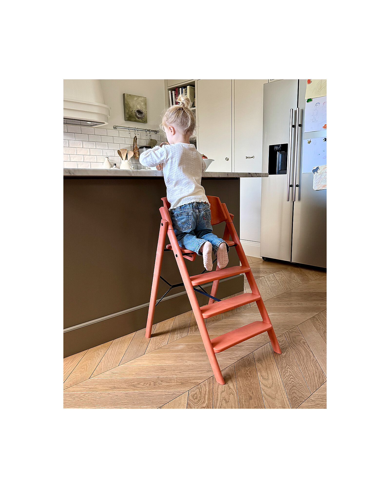 La sedia evolutiva per bambini KLAPP® del brand norvegse KAOS unisce design elegante e funzionalità intelligente. Realizzato in materiali 100% riciclati, offre una struttura solida, sostenibile evolutiva e salvaspazio. Permette una seduta ergonomica, con gradini fissi su cui il bambino può salire e scendere in autonomia, favorendo un senso di indipendenza. I gradini sono montati a intervalli studiati per rendere il seggiolone KLAPP® un seggiolone completamente evolutivo che accompagnerà i bambini dalla nascita per tutte le fasi della crescita. Il seggiolone evolutivo KLAPP® arriva già montato: basta aprirlo, bloccare il sedile, ed è pronto all’uso, senza bisogno di regolazioni, brugole e attrezzi. La sedia evolutiva KLAPP® è l’unico seggiolone dal design nordico che si richiude in pochi secondi fino a uno spessore di soli 13 cm, ideale per spazi ridotti, per appenderlo al muro o per viaggiare. Ha una portata massima di ben 110 Kg potendo così accompagnare il bambino dall’infanzia fino all’età adulta. Può essere usata fin dalla nascita con l’aggiunta dell'apposita sdraietta. Altri accessori comprendono anche il Set Sponda di Sicurezza e Vassoio per rendere la sedia evolutiva KLAPP® un perfetto e completo seggiolone prime pappe. Le superfici lisce sono facili da pulire con un panno. Il seggiolone è certificato secondo i più alti standard, garantendo sicurezza e qualità. La Sedia Evolutiva di KAOS, pluripremiata e ideata da una mamma norvegse in cerca di un seggiolone evolutivo in stile nordico e salvaspazio, è la soluzione perfetta per ogni esigenza.
