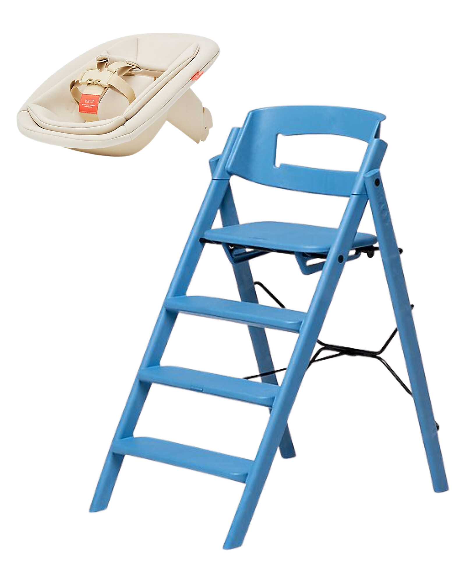 Sedia Evolutiva KLAPP + Sdraietta Neonato - Blu e Sabbia - 100% Materiali Riciclati