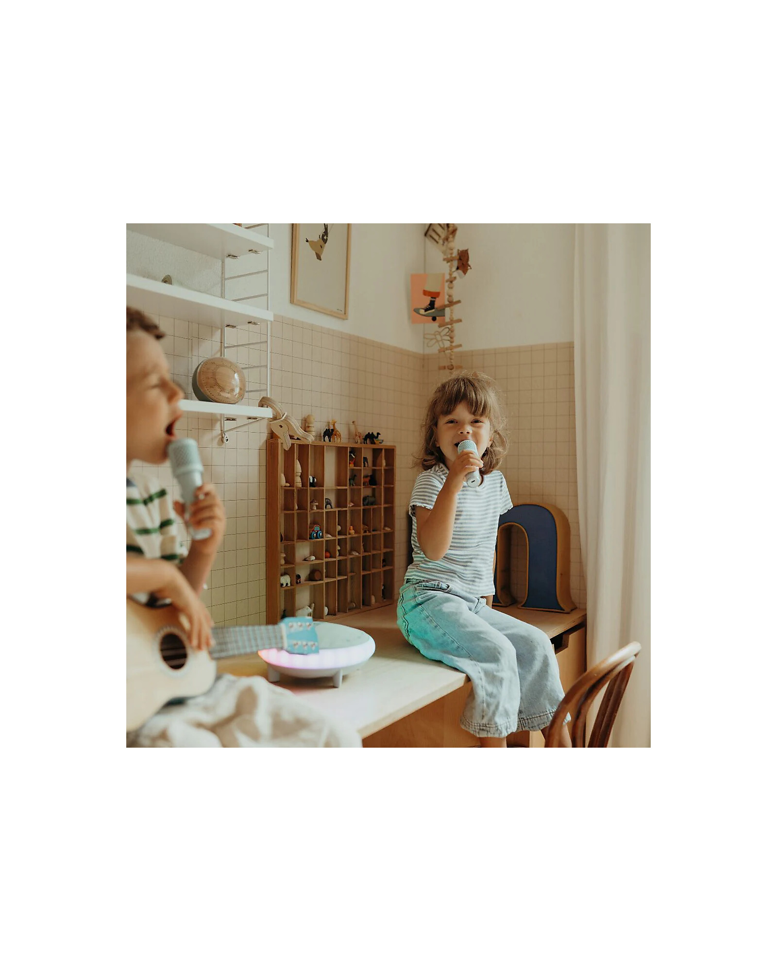 Rendi ogni festa indimenticabile con KIDYKARAOKE, l’altoparlante portatile per karaoke che unisce suono potente e effetti luminosi divertenti. Dotato di due microfoni wireless e numerose funzionalità interattive, trasforma qualsiasi luogo in un vero palcoscenico. Grazie al cassa da 40W e ai molteplici effetti sonori e luminosi, KIDYKARAOKE è il compagno ideale per le tue feste, sia a casa che in movimento. Perfetto per bambini dai 5 anni in su, offre ore di divertimento sicuro e coinvolgente, stimolando la creatività e la voglia di esibirsi in modo facile e spensierato.
