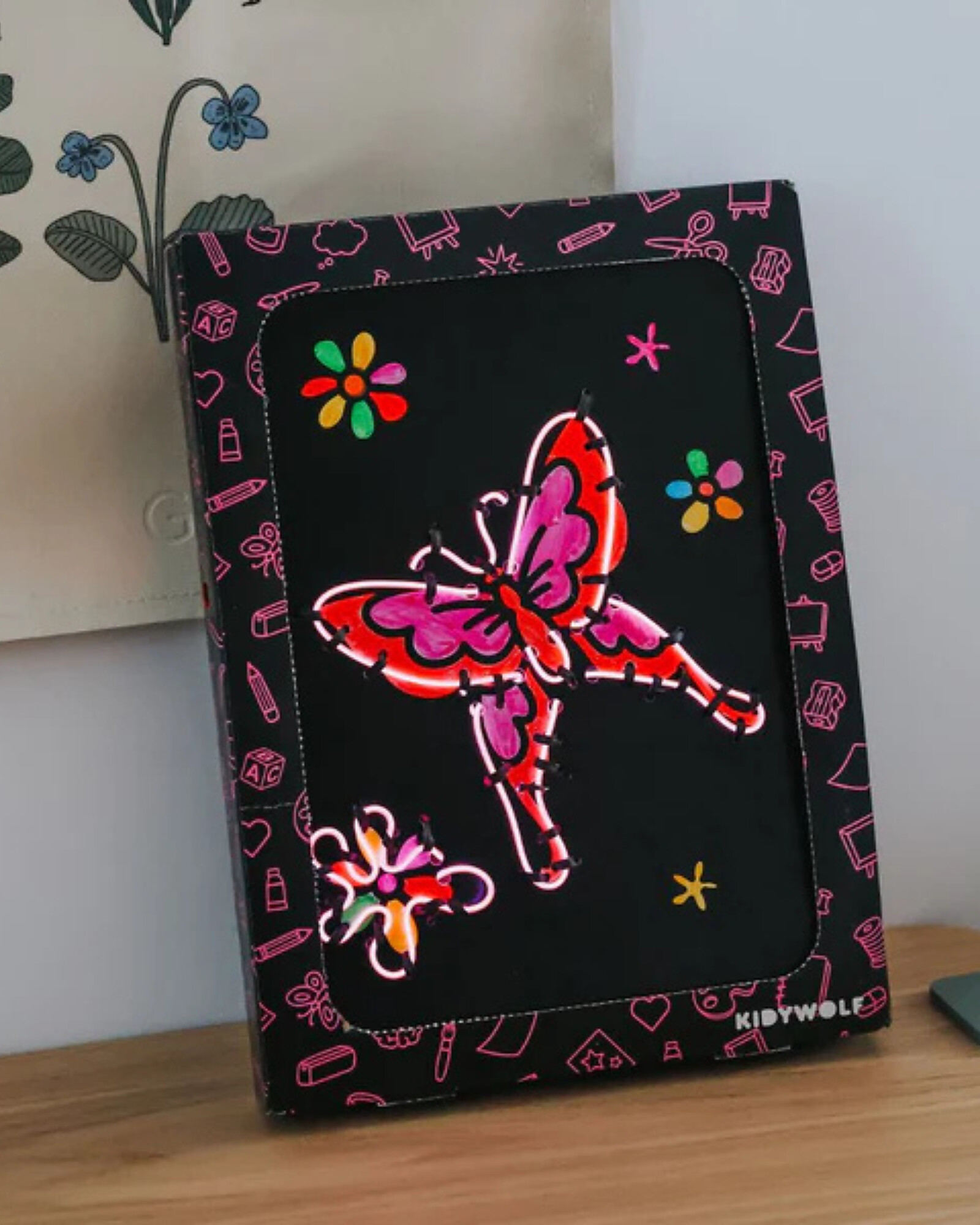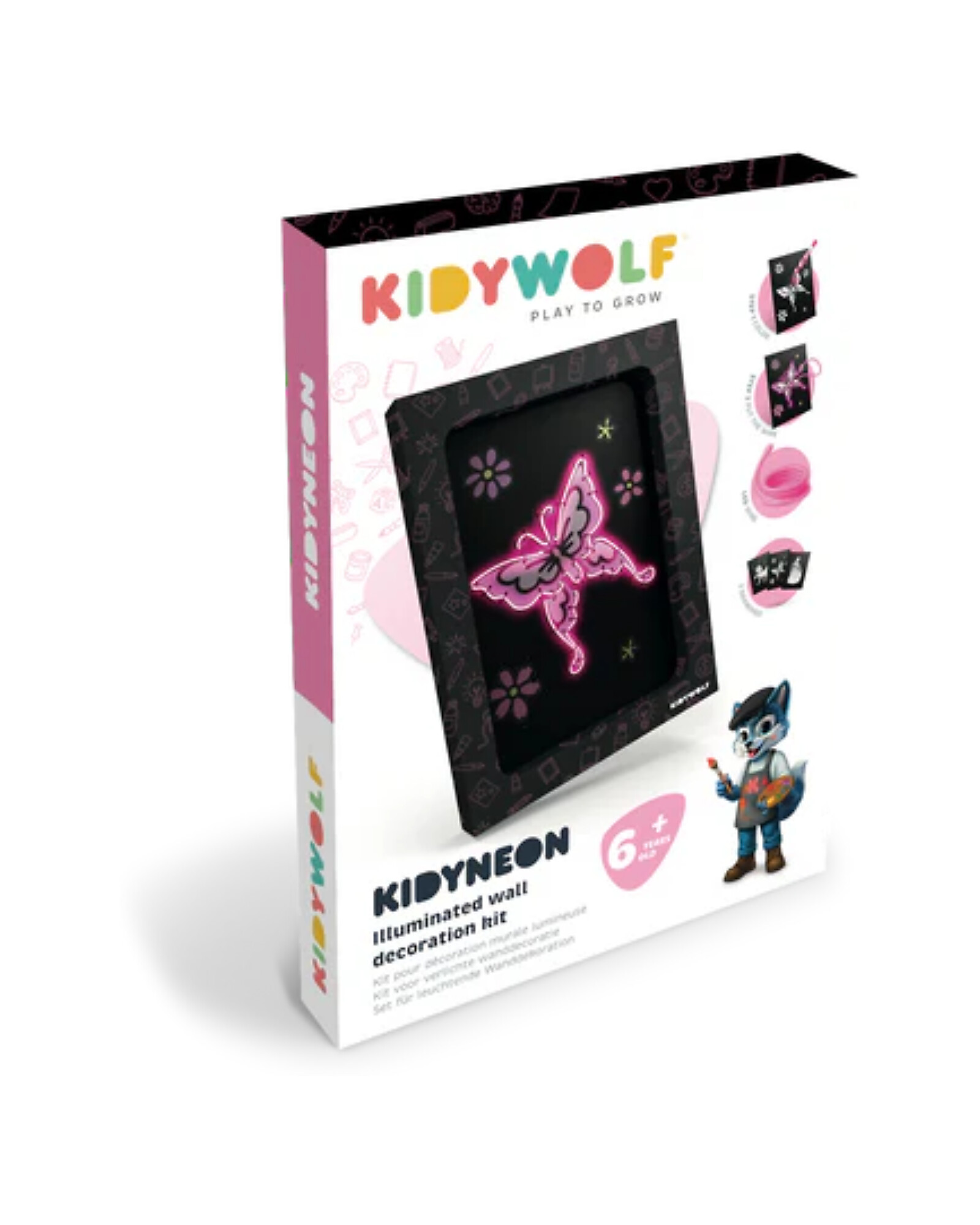 Kidyneon di Kidywolf è un kit luminoso creativo che trasforma l’immaginazione dei bambini in veri capolavori di luce. Con il suo filo al neon flessibile, il bambino può disegnare, modellare e creare quadri luminosi personalizzati, dando vita a forme, scritte e mondi fantastici. Ogni creazione brilla di colore, stimolando creatività, manualità e espressione artistica. Facile da usare e sicuro, Kidyneon rende ogni momento di gioco un’esperienza magica e coinvolgente. Ideale per decorare la cameretta con luci al neon uniche, è il regalo perfetto per piccoli artisti che vogliono vedere le proprie idee illuminarsi davvero. Un mix perfetto di gioco educativo e design luminoso.