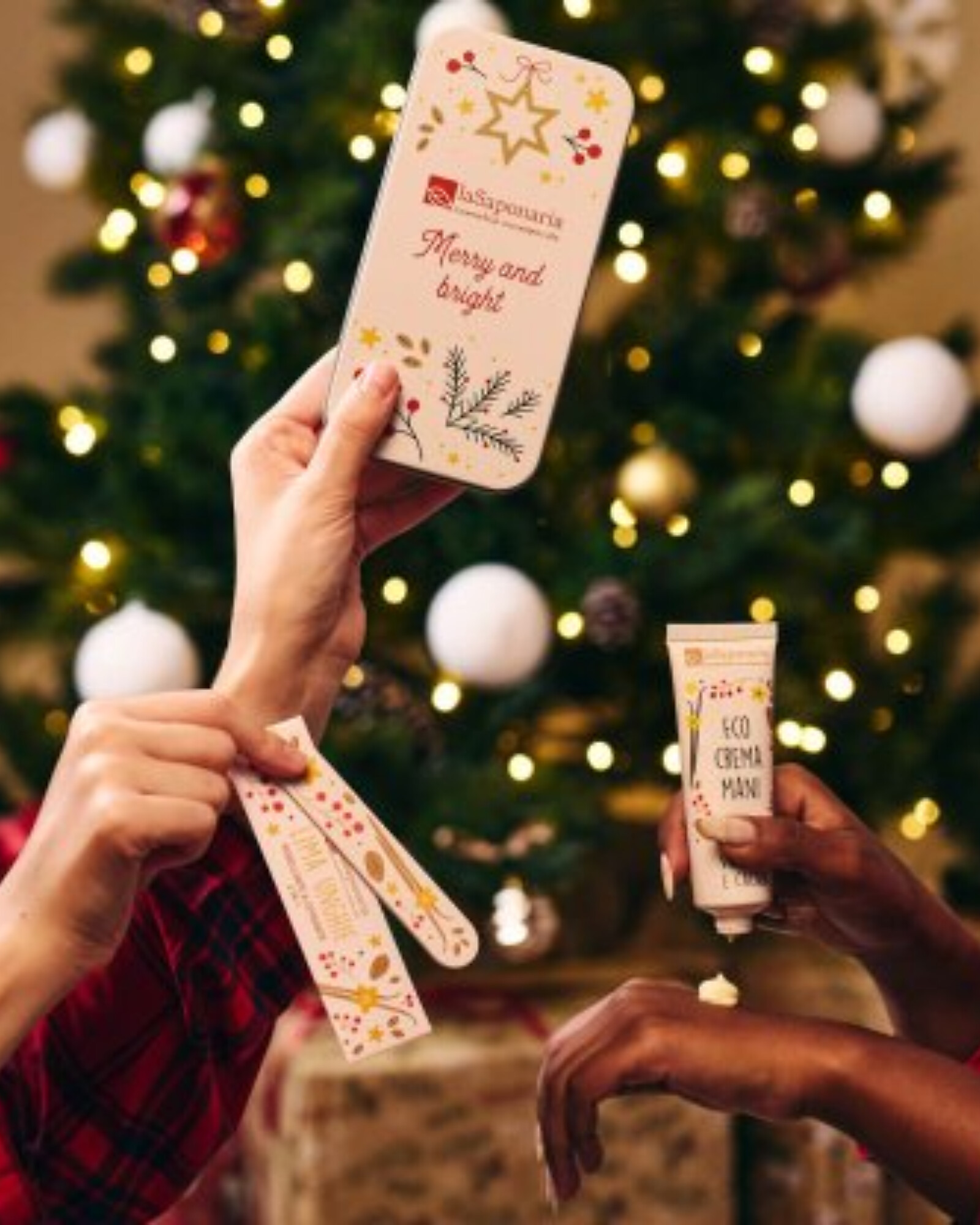 Lo Scrigno Eco Mani e Unghie di La Saponaria è un elegante cofanetto regalo pensato per chi desidera mani e unghie curate con un tocco di dolcezza. La crema mani da 40 ml, con un profumo avvolgente di vaniglia e cacao, è arricchita con ingredienti nutrienti e lenitivi che lasciano la pelle morbida e protetta anche durante i mesi più freddi. La lima unghie, con anima in legno sostenibile, offre una doppia grana per modellare e levigare le unghie in modo delicato ed efficace. Il cofanetto, realizzato in latta riutilizzabile, è perfetto da portare sempre in borsa o da regalare a chi ama prendersi cura di sé. Un pensiero ideale per Natale, compleanni o semplicemente per concedersi una coccola quotidiana.