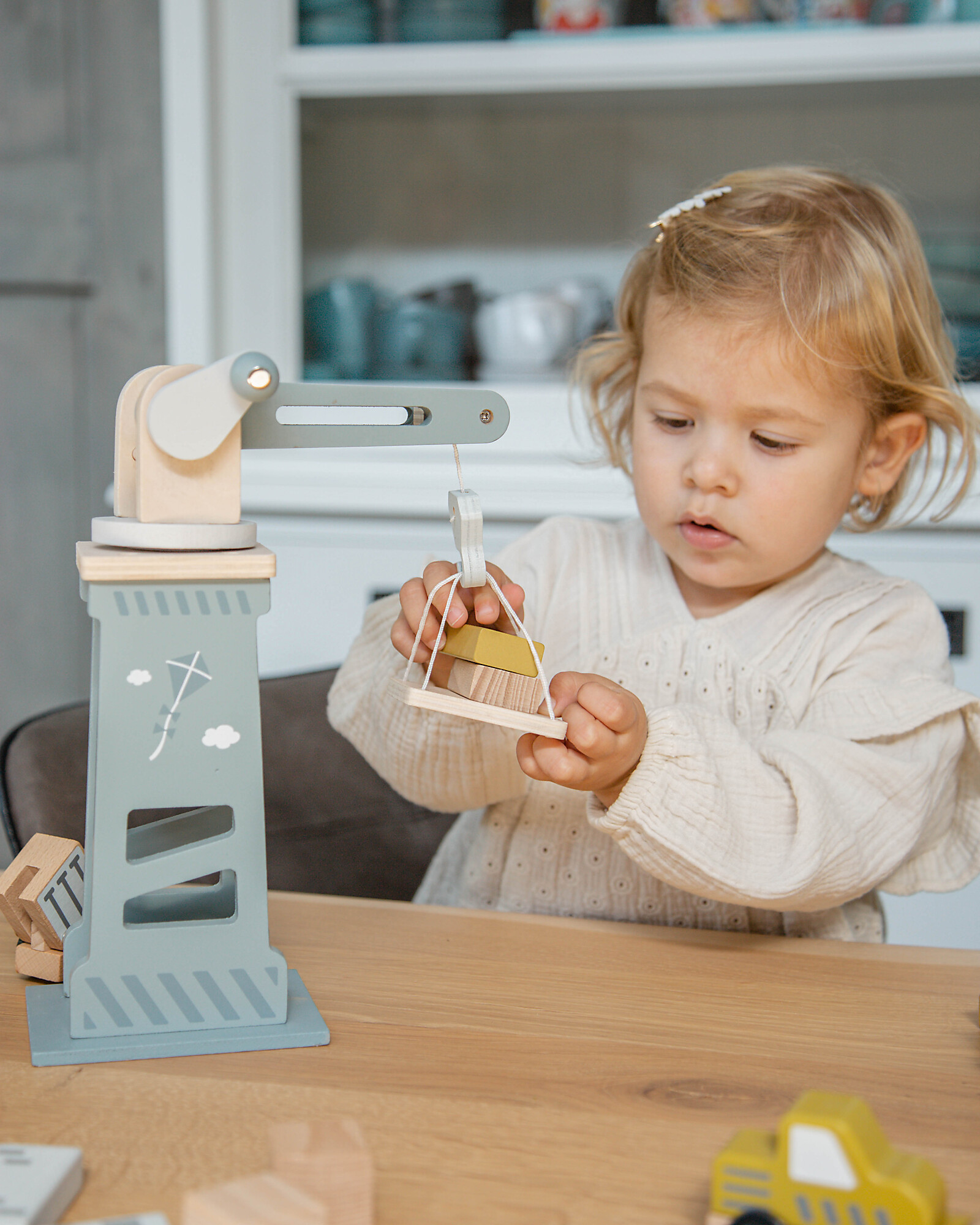 Il Cantiere Giocattolo in Legno di Label Label è un giocattolo educativo e divertente pensato per stimolare l’immaginazione dei più piccoli. Realizzato in legno di faggio certificato FSC, garantisce sicurezza e sostenibilità. Il set include gru mobili, veicoli da cantiere, segnali stradali e accessori, offrendo infinite possibilità di gioco creativo. I componenti sono dipinti con vernici a base d’acqua, sicure per i bambini. Il design curato nei dettagli e i colori tenui lo rendono anche un bellissimo complemento d’arredo per la cameretta.