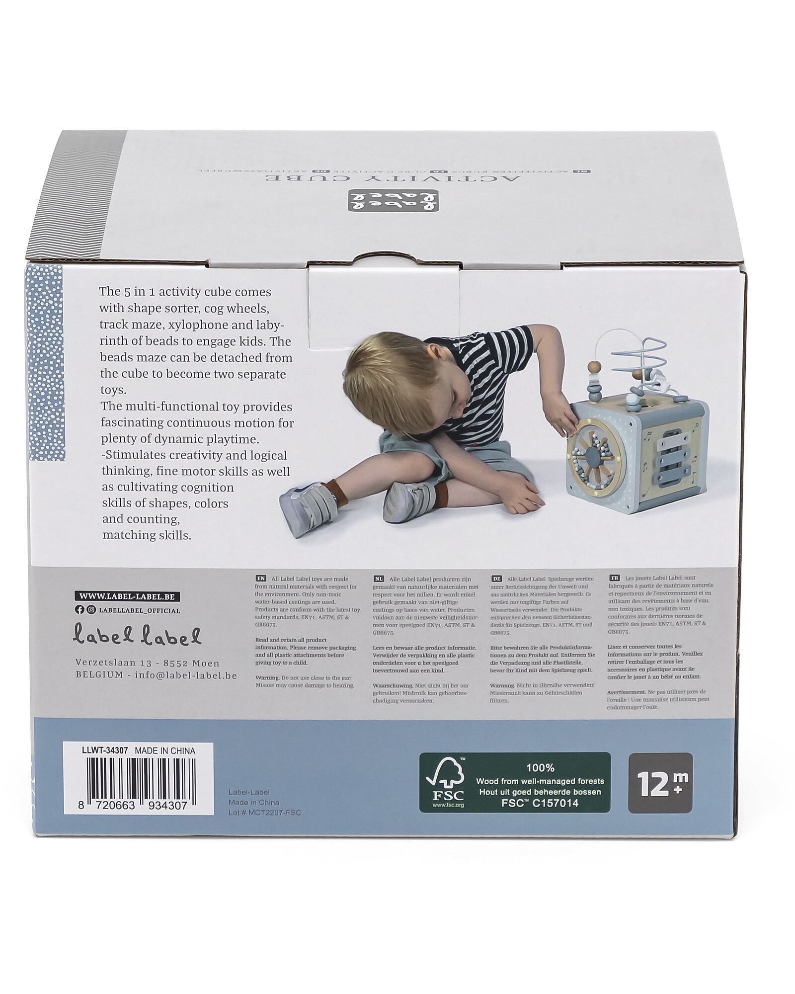 Cubo Attività 5 in 1 in Legno FSC - Azzurro -12+ m