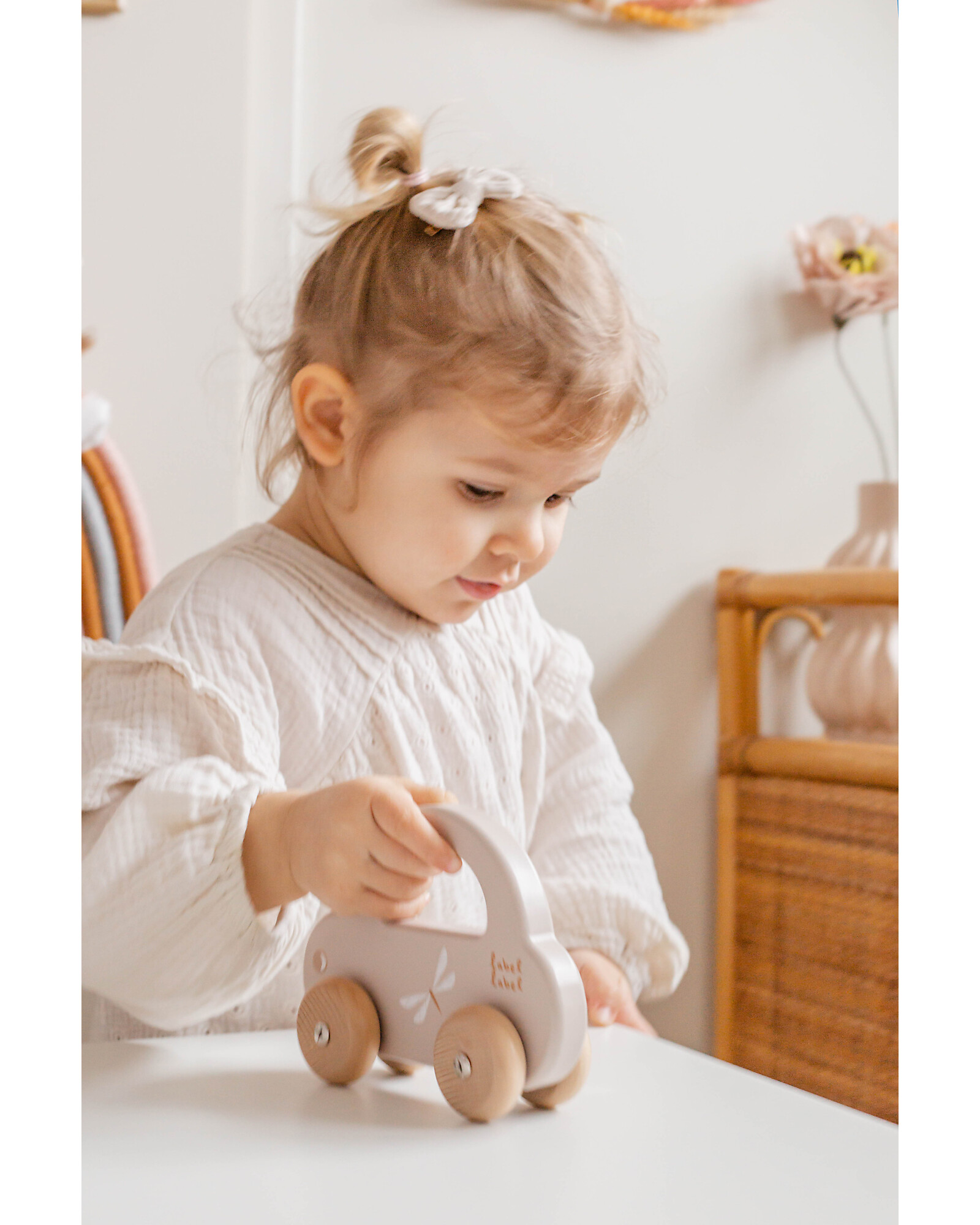 I bambini in età prescolare possono facilmente afferrare l'auto dalla maniglia per farla andare o portarla dove vogliono. Il design slanciato dell'auto, i colori delicati abbinati alle ruote di legno naturale sono perfetti per stimolare lo sviluppo motorio del tuo bambino.