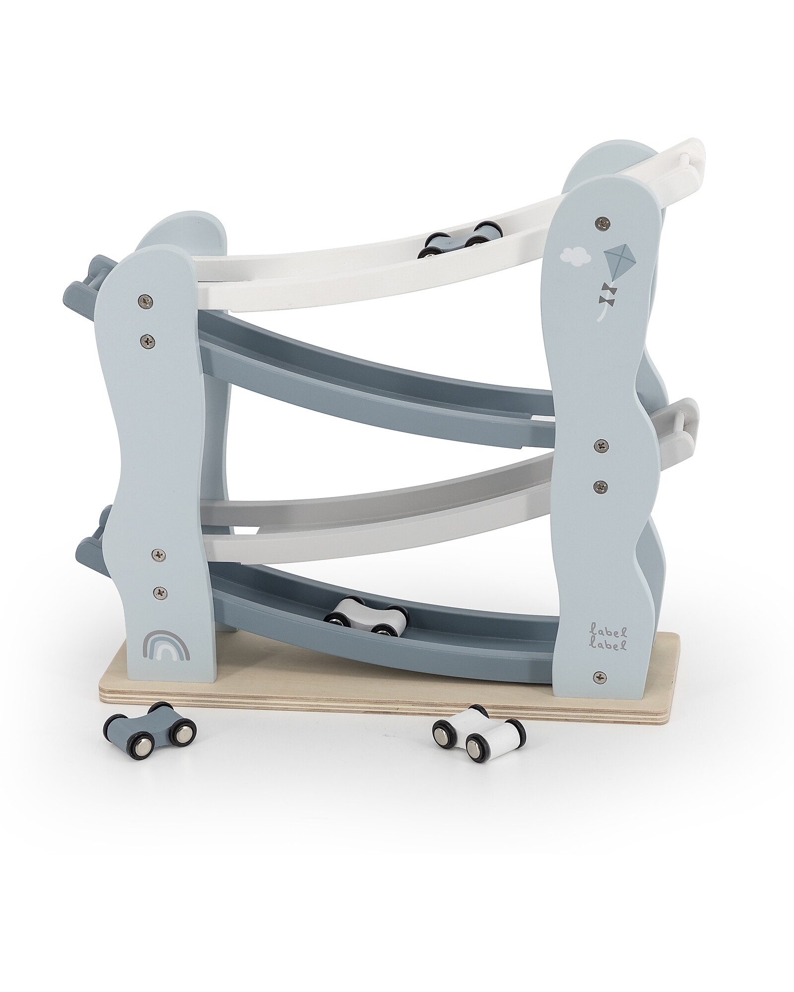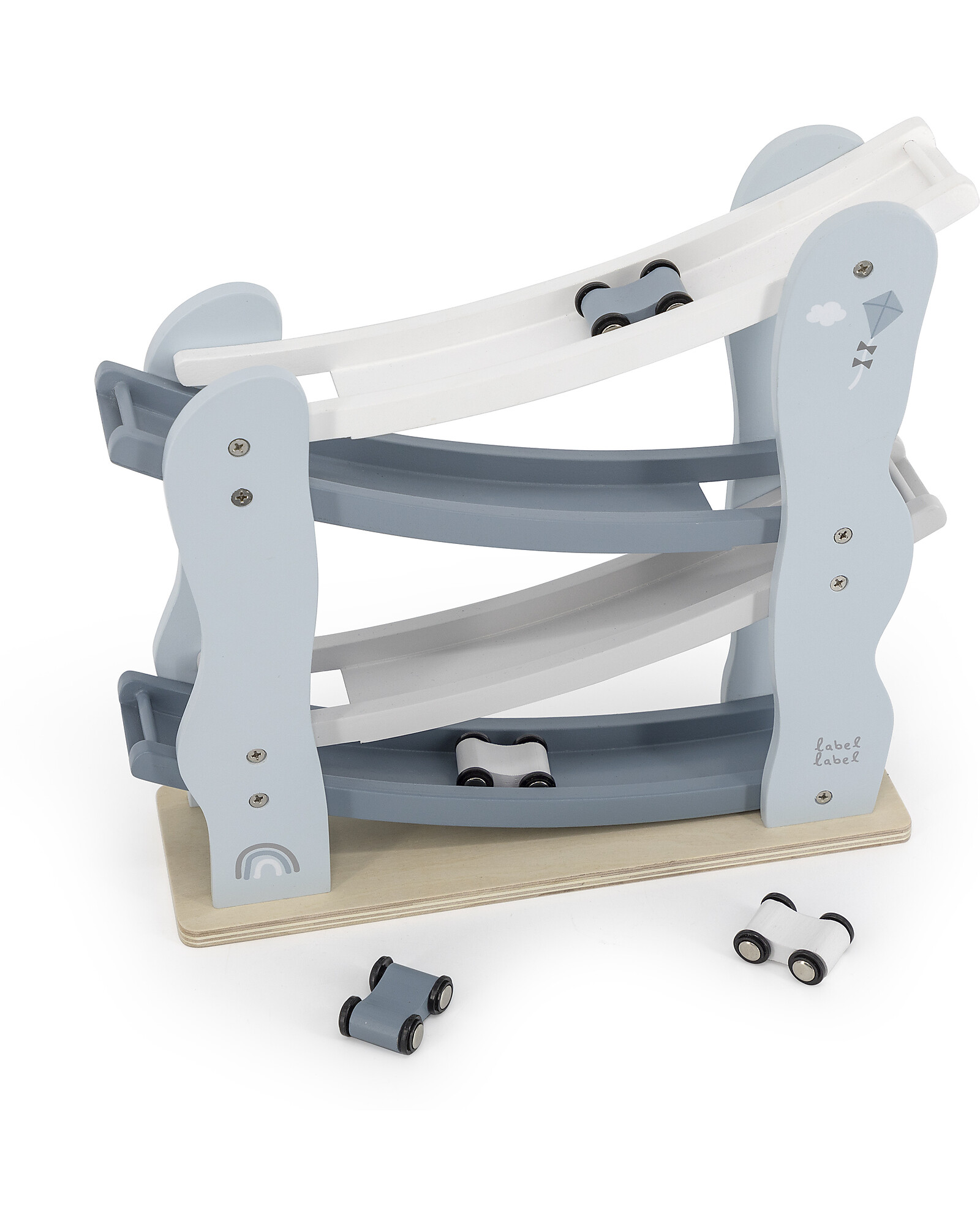 Questa divertente pista per auto di Label Label è realizzata in legno di faggio certificato FSC e dipinta con una vernice a base d'acqua sicura per i bambini.