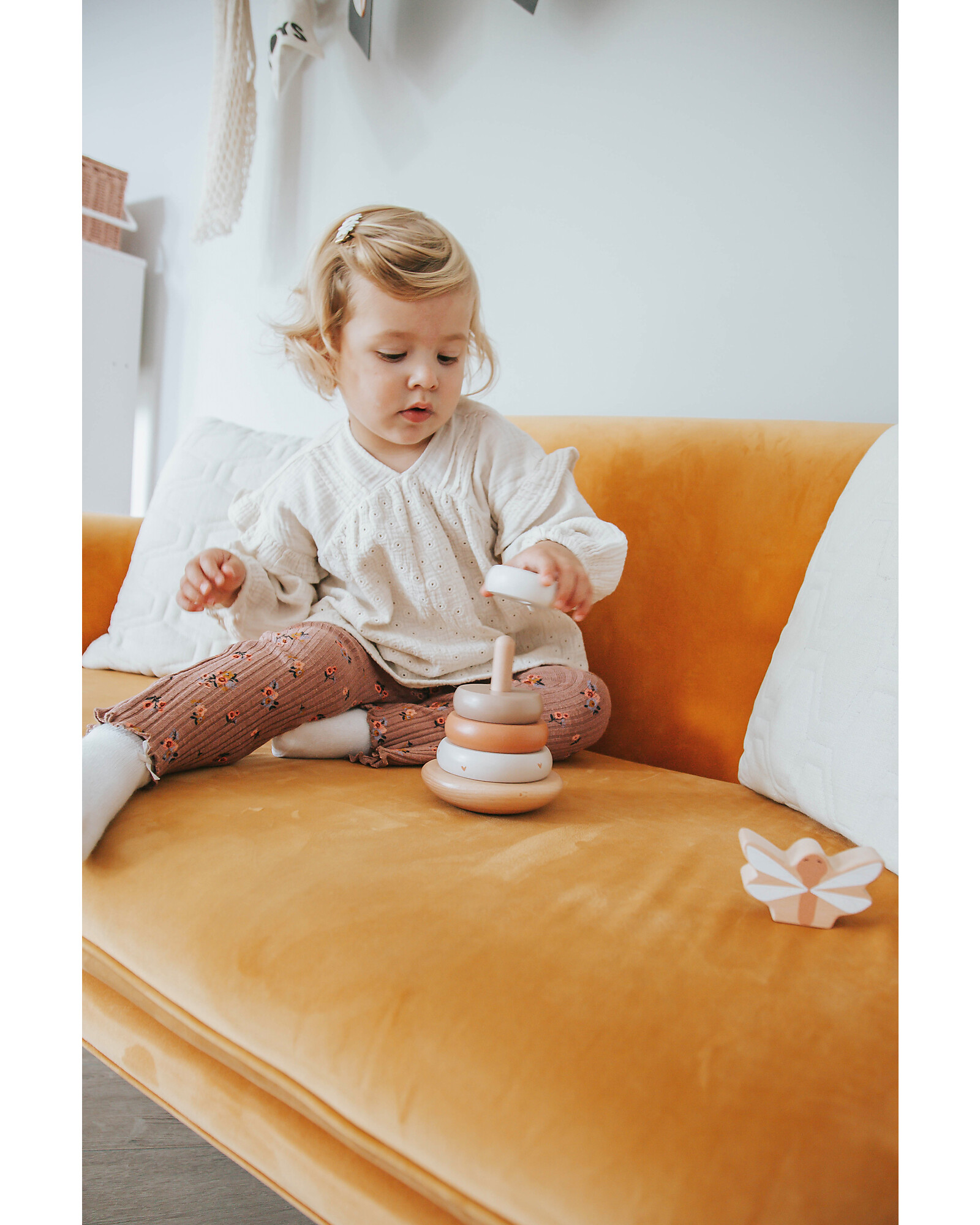 Questa torre ad anelli impilabili in legno di Label Label è un gioco educativo senza tempo. Realizzata con materiali provenienti da fonti sostenibili e rifinita con vernici atossiche, stimola le abilità motorie fini, la coordinazione occhio-mano e il pensiero logico nei più piccoli. Ispirata ai principi Montessori, presenta un design semplice ma coinvolgente che aiuta i bambini a esplorare dimensioni, forme ed equilibrio in modo giocoso. Compatta e maneggevole, è perfetta per le mani dei più piccoli e facile da riporre. Questo gioco promuove un approccio sostenibile al gioco senza rinunciare a stile e qualità. Ideale per divertimento e apprendimento, accompagna lo sviluppo del bambino attraverso la scoperta attiva.