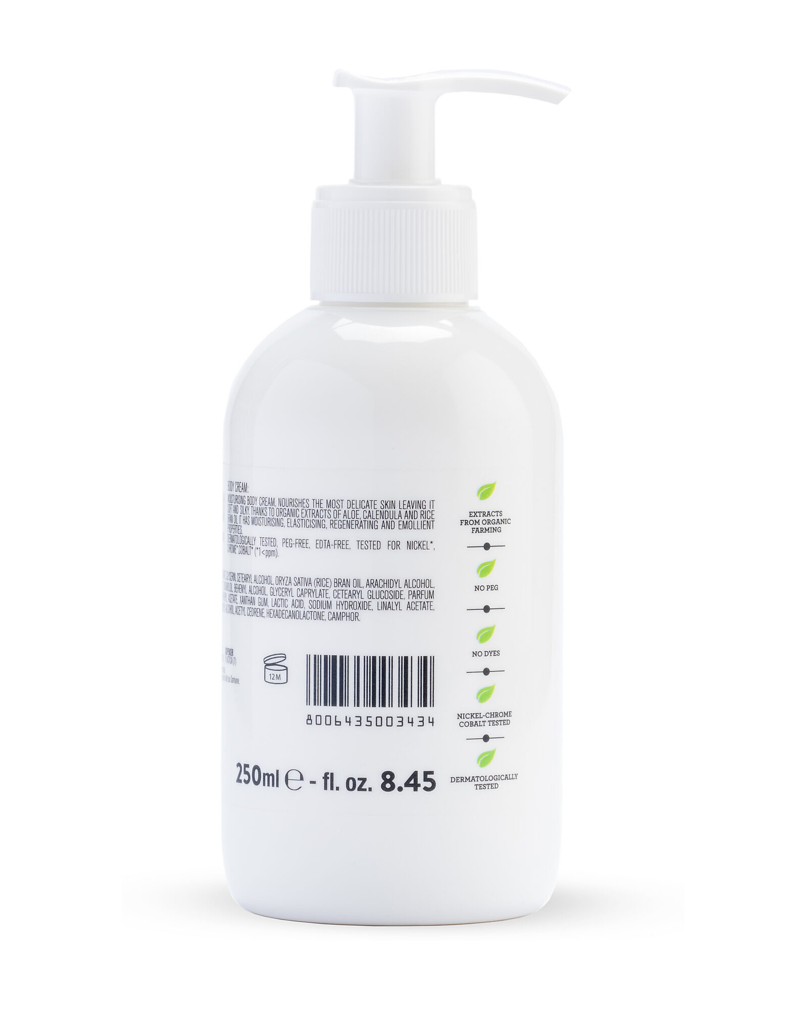 - Ingredienti: Aqua (Water), Caprylic/Capric Triglyceride, Decyl Oleate, Ethylhexyl Stearate, Oryza Sativa (Rice) Bran Oil, Glycerin, Cetearyl Alcohol, Arachidyl Alcohol, Calendula Officinalis Flower Extract* , Aloe Barbadensis Leaf Extract *, Parfum (Fragrance), Behenyl Alcohol, Cetearyl Glucoside, Glyceril Caprylate, Arachidyl Glucoside, Sodium Dehydroacetate, Tocopheryl Acetate, Bisabolol, Xanthan Gum, Lactic Acid, Geraniol, Cinnamyl Alcohol, Coumarin, Anise Alcohol, Benzyl Salicylate, Linalool, Benzyl Benzoate, Citronellol, Limonene, Butylphenyl Methylpropional. *proveniente da agricoltura biologica