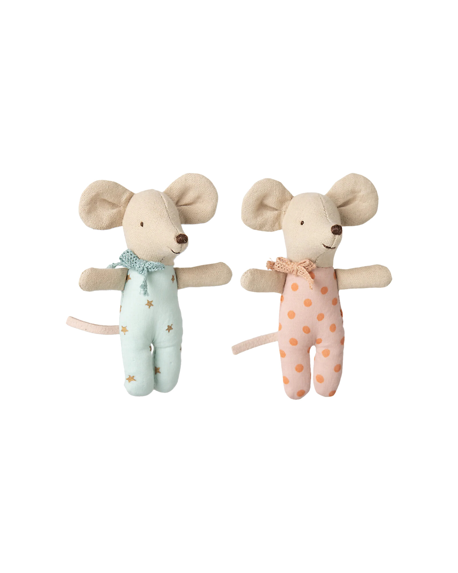 Un must-have di Maileg. Questi dolci topolini gemelli riposano tranquilli nel loro sacco a pelo, fianco a fianco, comodamente sistemati nel loro letto a fiammifero. Perfetti per essere abbinati a tutti gli accessori in formato topo bebé, per infinite avventure di gioco.