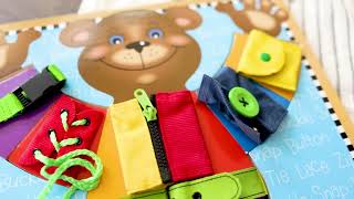 Questa tavoletta gioco in legno firmata dal marchio americano Melissa & Doug è stata pensata per permettere ai nostri bambini di imparare giocando! Un simpatico orsetto sorridente è ricoperto di pezzi di puzzle che non solo si incastrano perfettamente tra loro, ma si usano per sperimentare varie attività, come fare nodi, chiudere e aprire zip, infilare un bottone…