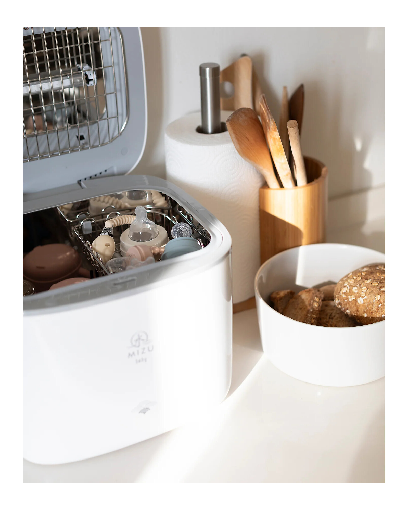 Scopri Airi UV Pro Led di Mizu Baby, che elimina il 99,9% dei batteri in pochi minuti, senza bisogno di acqua né sostanze chimiche. Grazie alla lampada LED UVC, offre una sterilizzazione efficace per biberon, accessori e oggetti di uso quotidiano, con la capacità di conservare fino a 72 ore di igiene. Facile da usare grazie al pannello touch con display digitale, è anche molto capiente, in grado di contenere fino a 8 biberon. Perfetto per garantire la massima sicurezza e igiene per i tuoi piccoli, ogni giorno. Un alleato indispensabile nella cura del bambino!