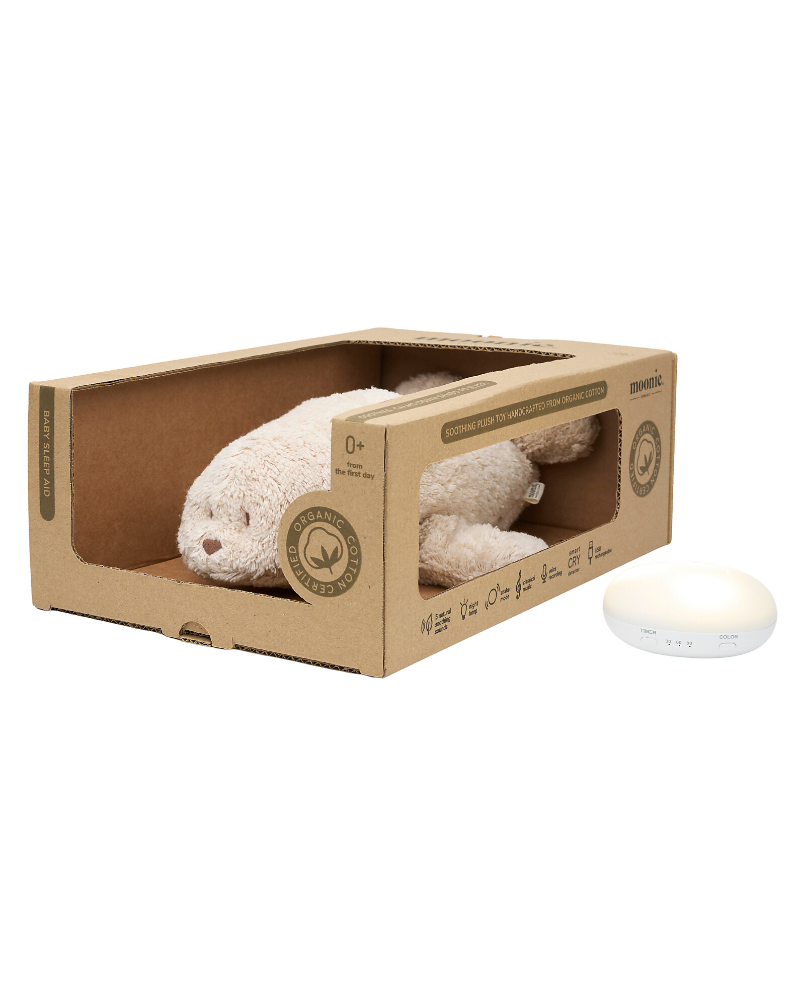- Il peluche Moonie è un piccolo amico per il tuo bebè, creato con tanta attenzione ai dettagli e che potrai regalargli fin dal primo giorno di nascita. Con la sua luce e i rilassanti suoni che può riprodurre, regalerà dolci sogni e notti tranquille al tuo bambino.