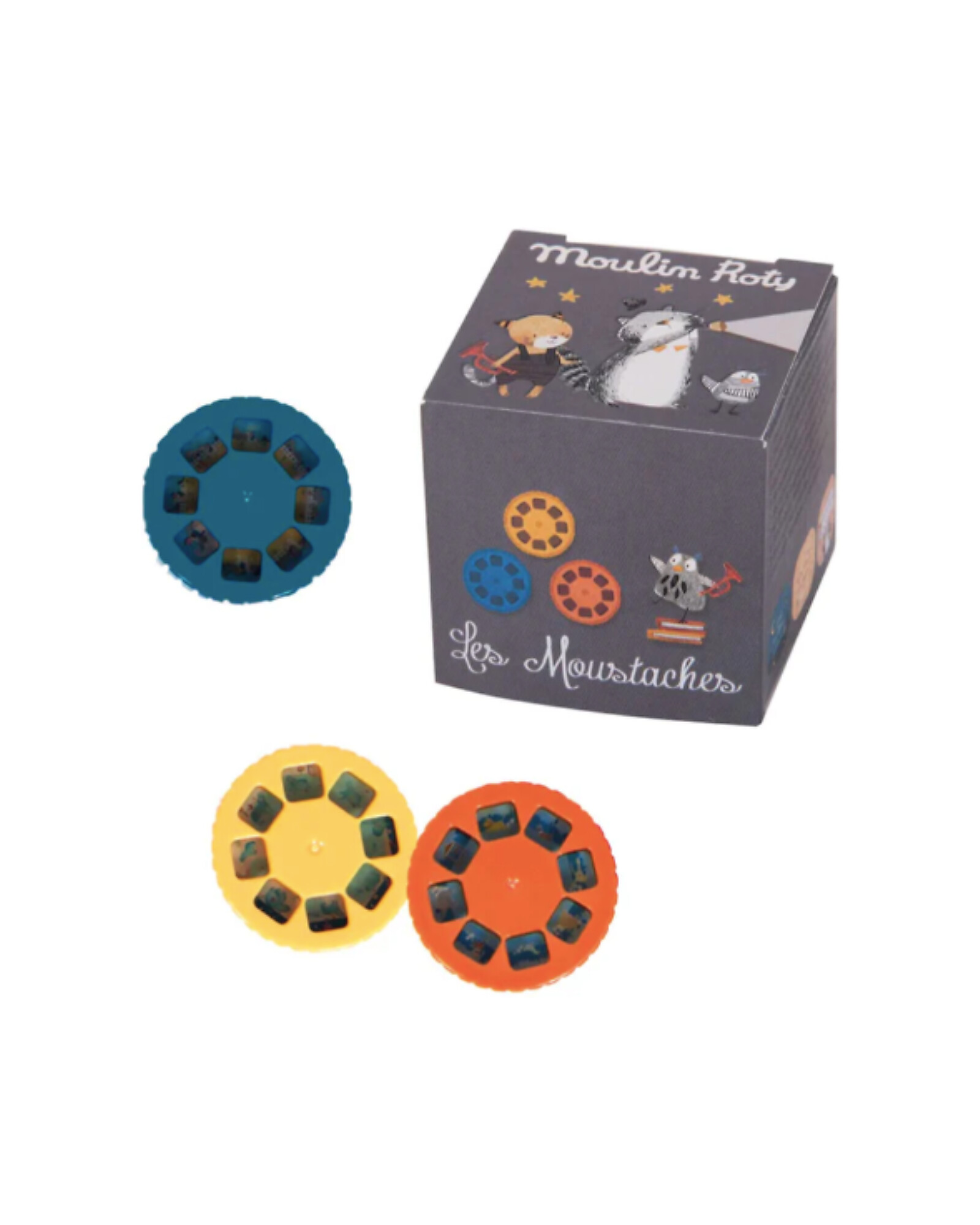 Segui i simpatici gatti nelle loro avventure con la Torcia Proiettore Favole Gatti di Moulin Roty! Questo divertente proiettore ti permette di raccontare fantastiche storie proiettando le scene sulle pareti della tua cameretta. Basta inserire uno dei dischetti inclusi, spegnere la luce e... che lo spettacolo abbia inizio! Ogni dischetto contiene 8 scene con protagonisti i gatti, che possono essere cambiate facilmente ruotando il disco, permettendo ai piccoli narratori di guidare i propri spettatori in mondi pieni di animali e personaggi fantastici.