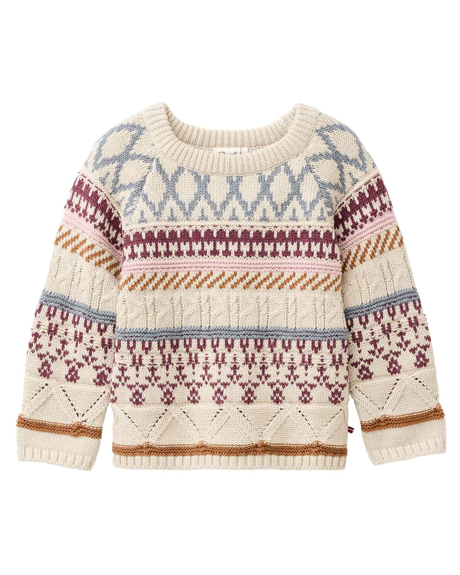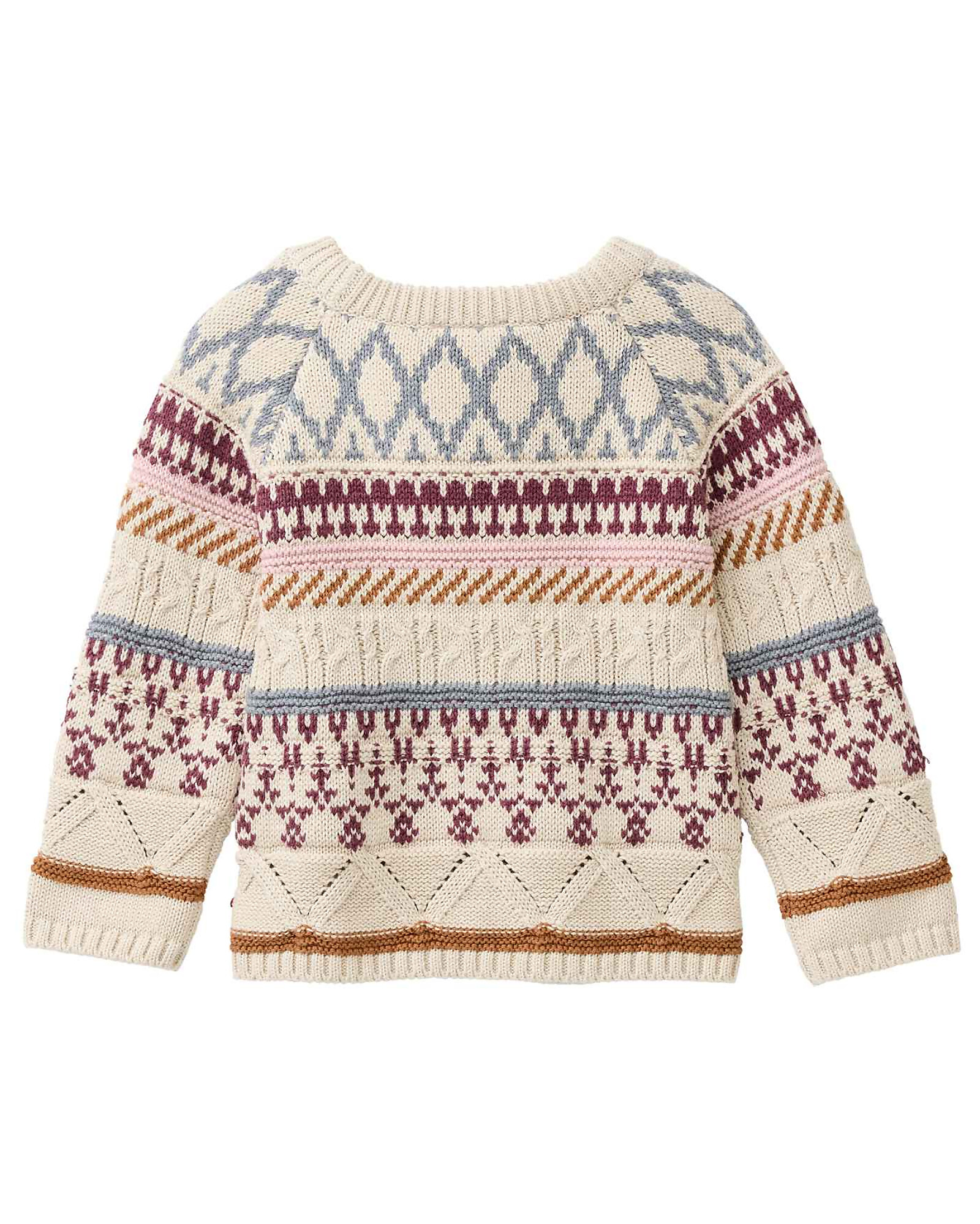 Maglione Lavorato a Maglia con Disegni - Panna - Cotone GOTS
