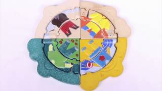 Ecco il simpatico doppio giocattolo educativo e divertente firmato dal marchio 100% green PlanToys. Da un lato il tuo bambino potrà vestire i personaggi collocati nelle quattro stagioni: inverno, primavera estate ed autunno. Per ogni stagione, un indumento diverso. Dall'altro lato ci sono quattro stampi da ricalcare, così i bambini potranno creare tanti disegni, uno per ogni periodo dell'anno. Questo gioco sviluppa la coordinazione, la manualità e insegna ai bimbi a raccontare storie! Il tuo piccolo potrà apprendere le diverse forme e riconoscere i diversi colori!
