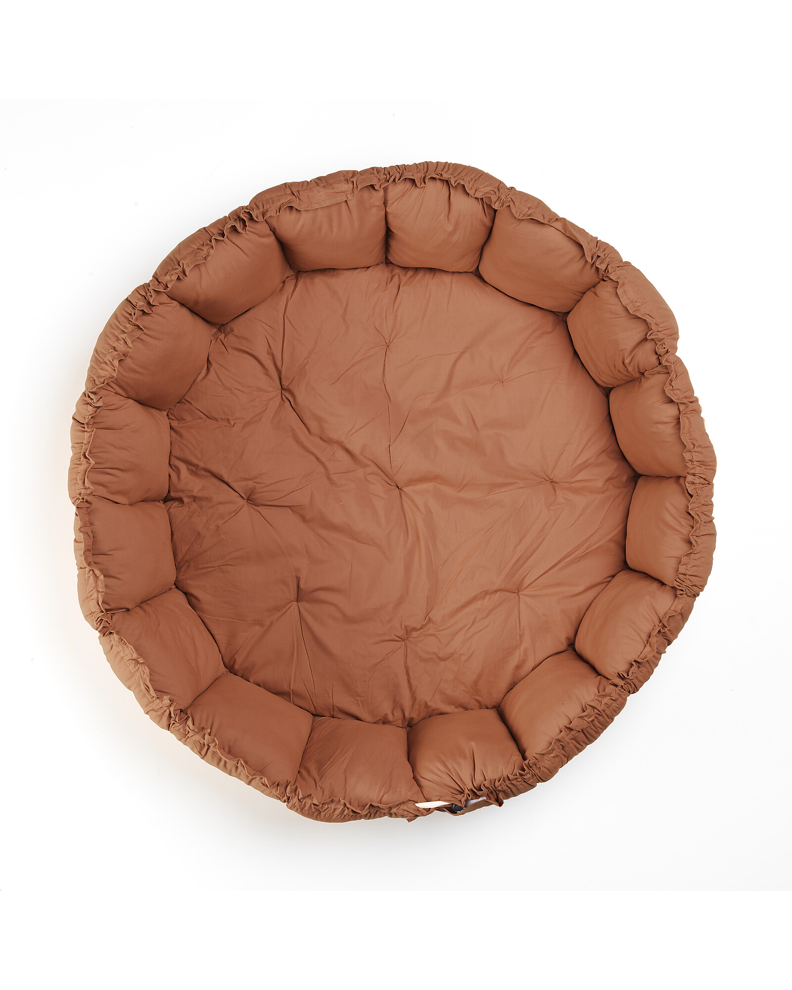Sacco Portagiochi Bloom - Tappeto Gioco Imbottito e Baby Nest 2 in 1 in 100% Cotone Bio - Tawny Brown