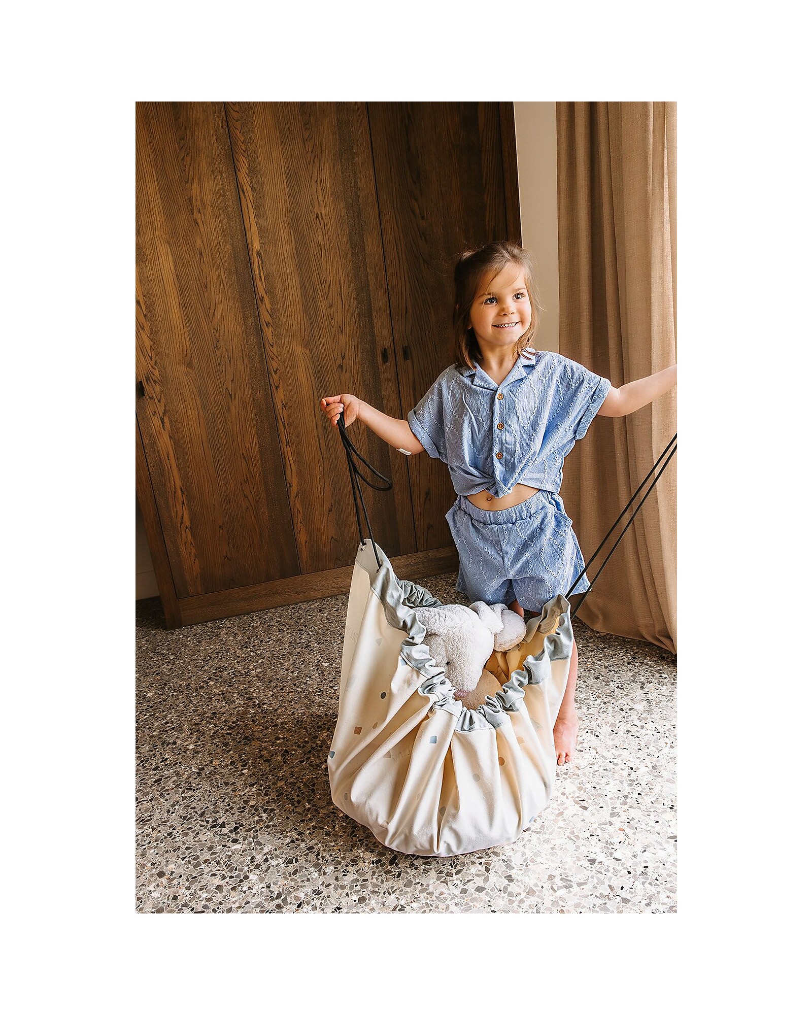 Pratico e Multifunzione: semplice e innovativo, è perfetto per far giocare il tuo bambino su una superficie soffice e accogliente che, in un colpo solo, si trasforma in un grande sacco portagiochi e borsa del cambio. Comodamente trasportabile.