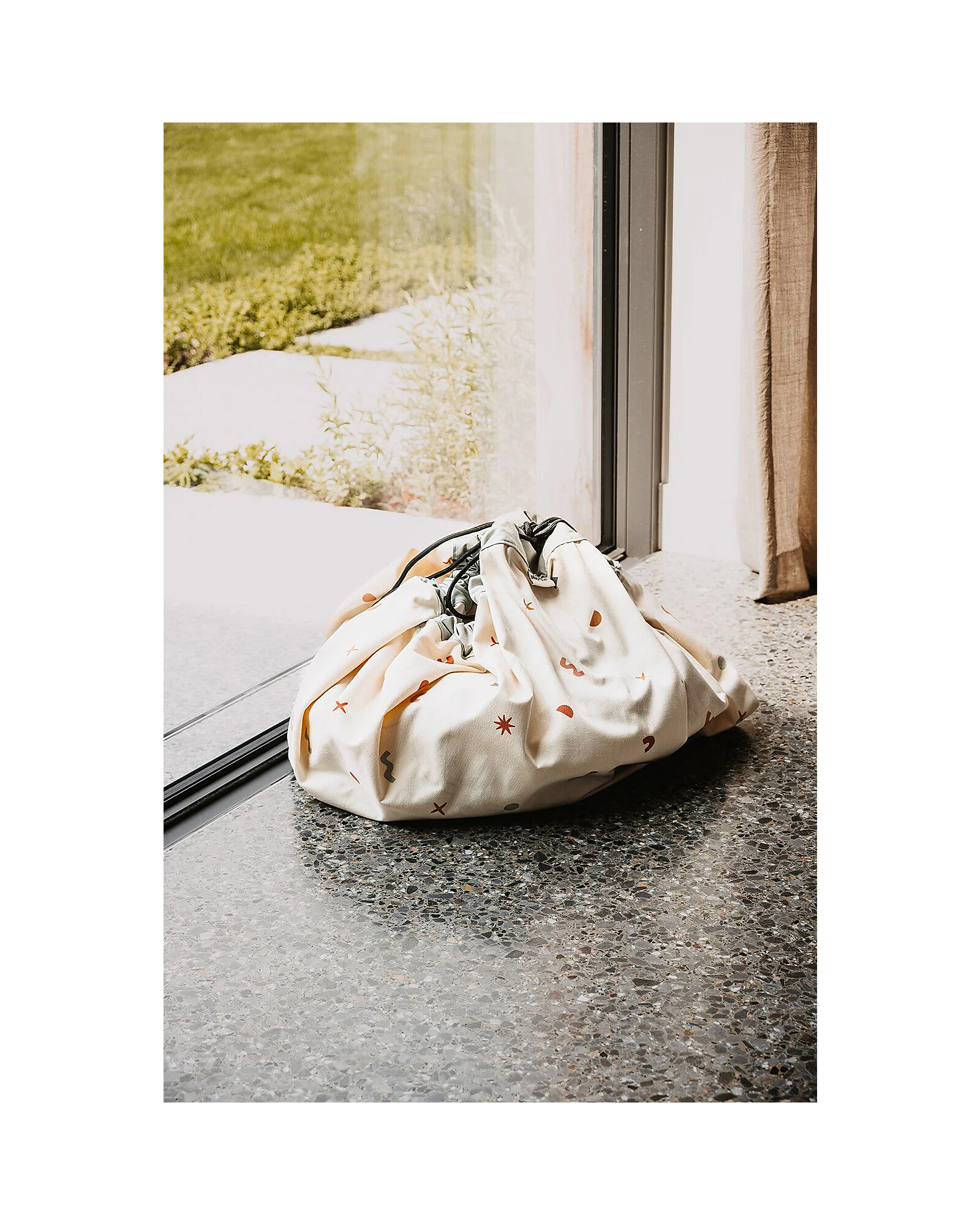 Play&Go Sacco Portagiochi e Tappeto Gioco Imbottito 2 in 1 Soft Cotone Biologico - Marrone Aranciato Tappeti Porta Gioco