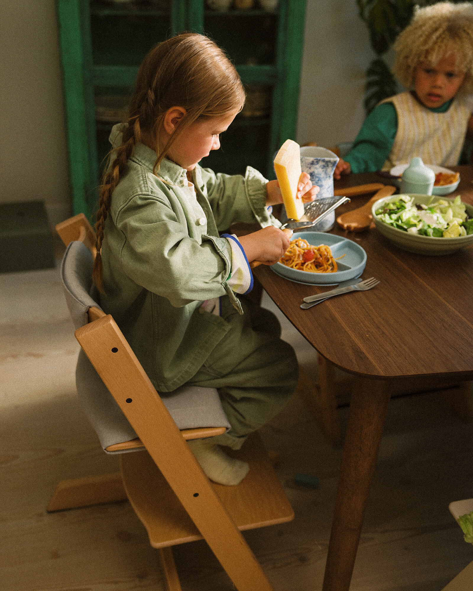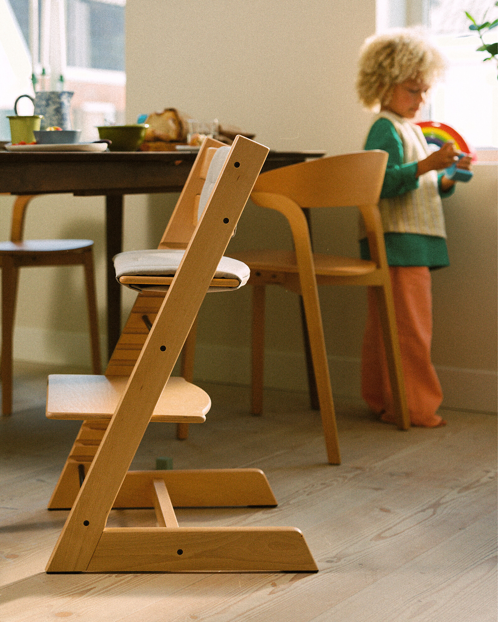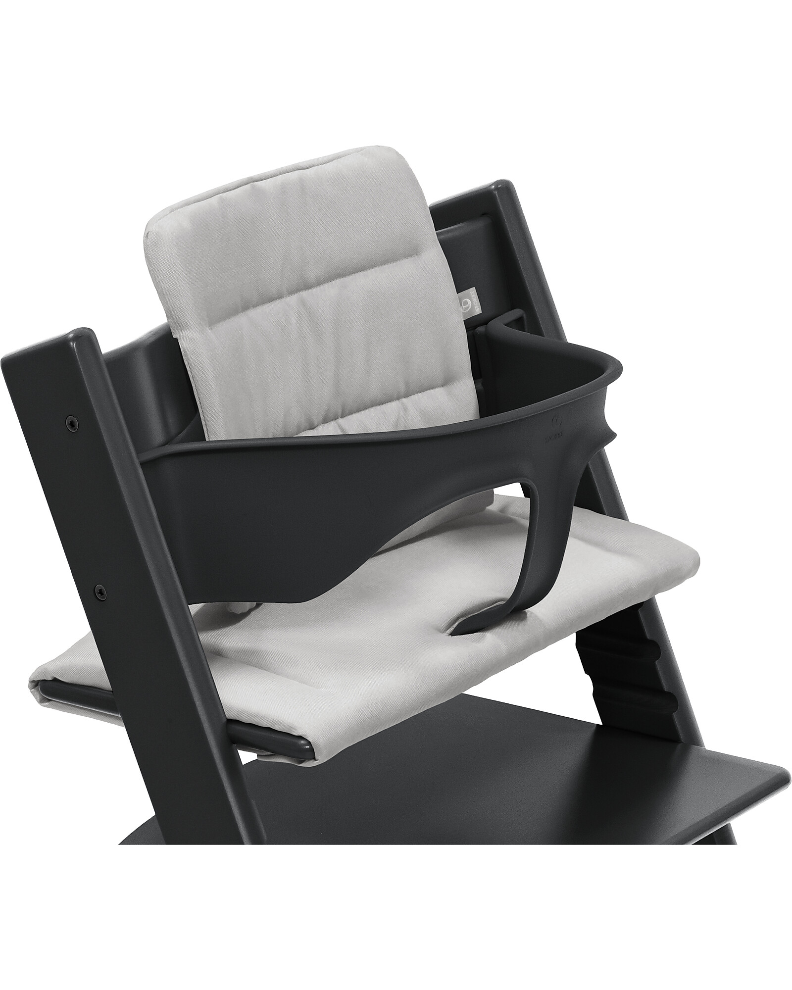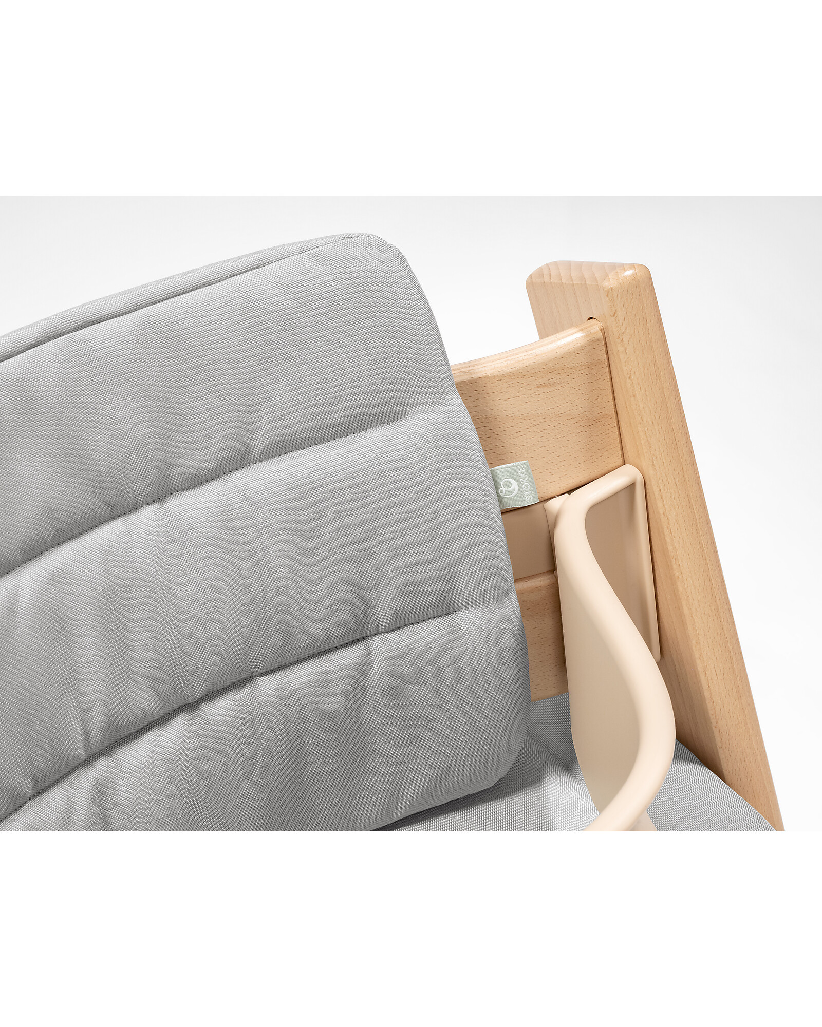 Il nuovo cuscino Tripp Trapp® è stato riprogettato per offrire una vestibilità più precisa e stabile sia sulla sedia Tripp Trapp® che sul Tripp Trapp® Baby Set. Il design migliorato, elegante e sartoriale, si integra perfettamente con le linee iconiche della sedia, mantenendone l’aspetto raffinato. Pensato per garantire comfort e praticità, questo cuscino è ideale per accompagnare la crescita del bambino con stile. La nuova struttura più solida offre un supporto ergonomico che dura nel tempo, mentre il tessuto tecnico con effetto easy-wipe consente una pulizia rapida e semplice, anche in caso di piccoli incidenti quotidiani. Inoltre, è realizzato interamente con materiali riciclati, a conferma dell'impegno di Stokke verso la sostenibilità.