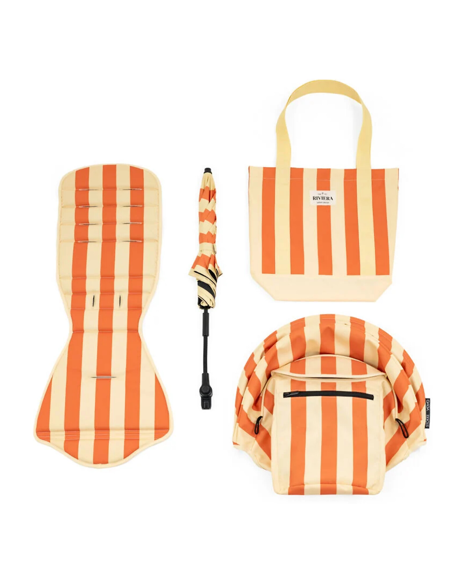 - Include: Set rivestimento per passeggino, ombrellino parasole e borsa riviera