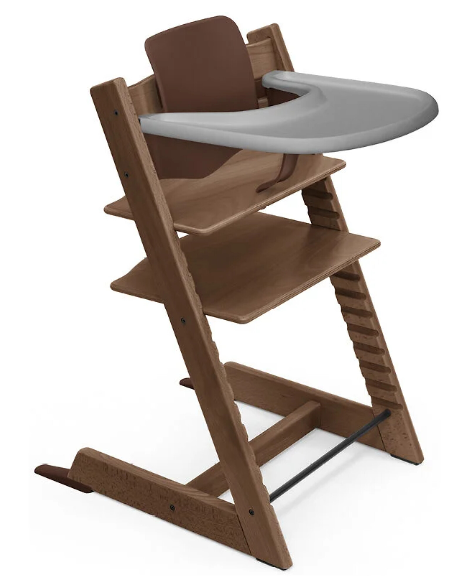 Sedia Evolutiva Tripp Trapp Marrone in Faggio + Baby Set + Vassoio Grigio - 6M+