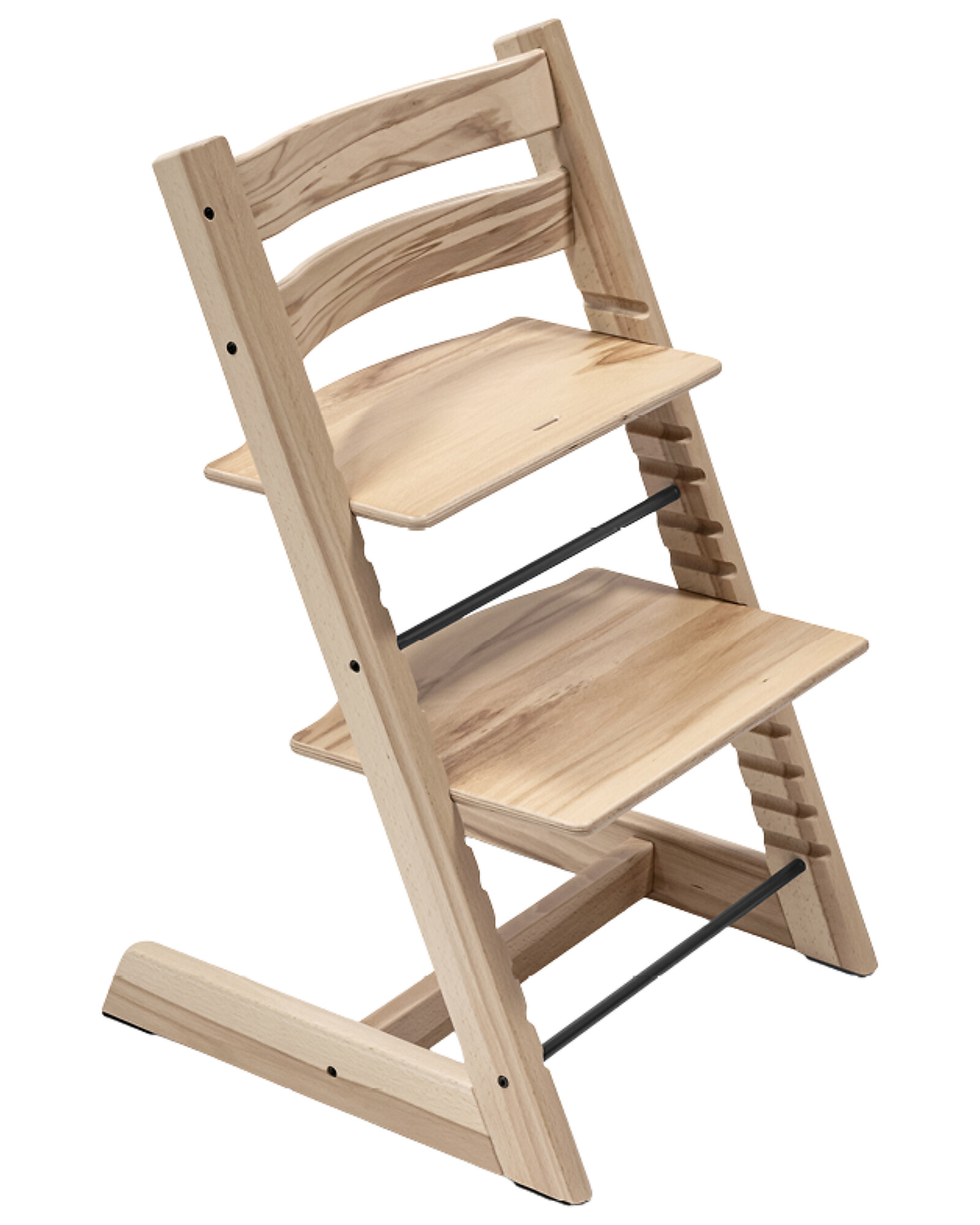 La Sedia Tripp Trapp® di Stokke è la sedia che cresce con il tuo bambino! Caratterizzata dal classico, versatile e intelligente design scandiavo firmato Peter Opsvik, è un articolo iconica, pratica e funzionale. La Sedia Tripp Trapp® si adatta perfettamente al tavolo da pranzo, permettendo così al bambino di imparare e crescere insieme al resto della famiglia. La seduta e il poggiapiedi sono regolabili sia in altezza che in profondità, rendendo la Sedia Tripp Trapp® capace di assicurare il corretto sostegno alla schiena e ai piedi in base all'età, lasciando allo stesso tempo grande libertà di movimento. Questa nuova versione utilizza la tecnica giapponese Wabi Sabi, il legno è lasciato grezzo per porre l'attenzione sulle “imperfezioni”, accettandole come parte della bellezza offerta dalla natura.