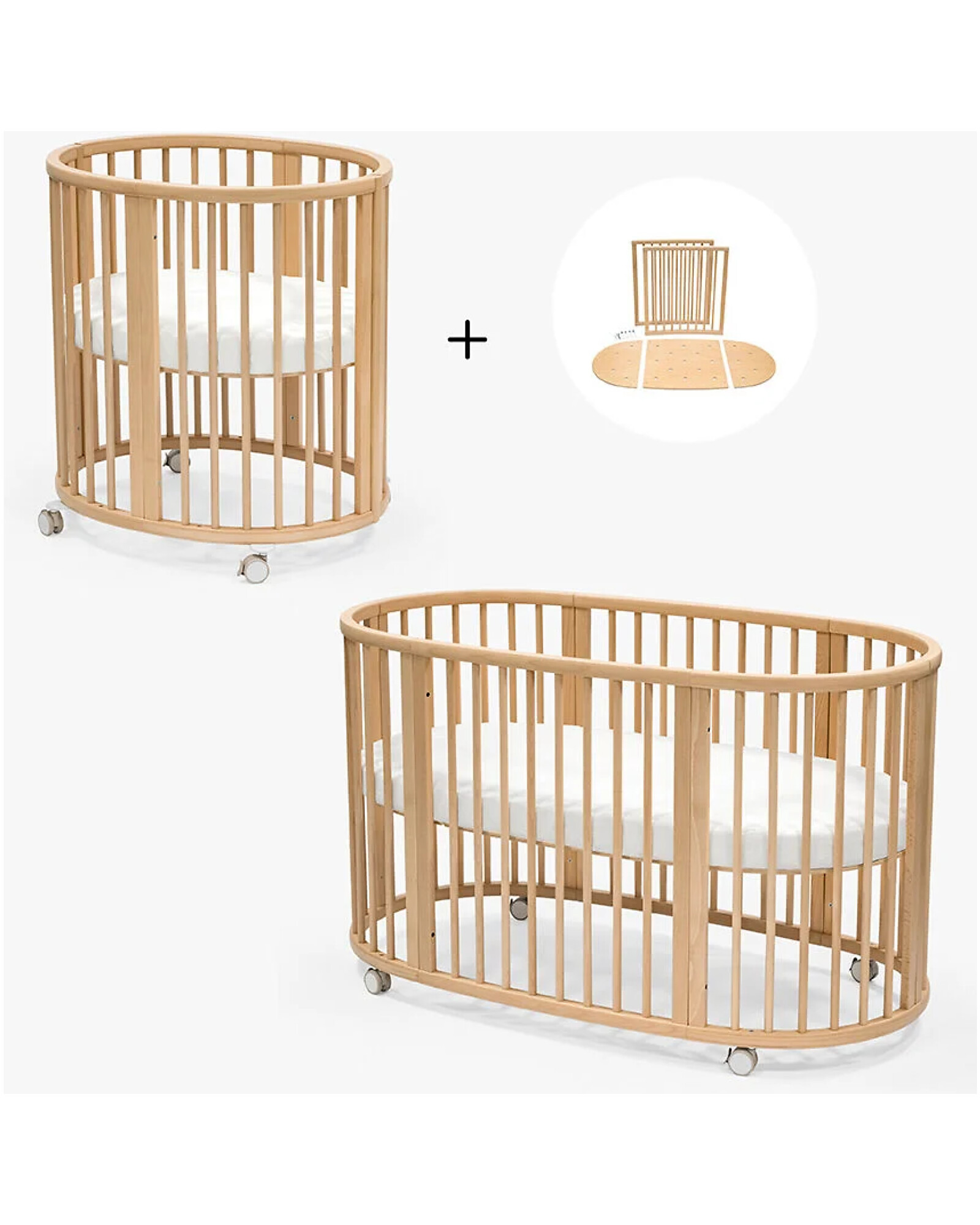 Set Lettino Sleepi Mini Natural con Estensione fino a 5 Anni - Include Materassi e Lenzuoli