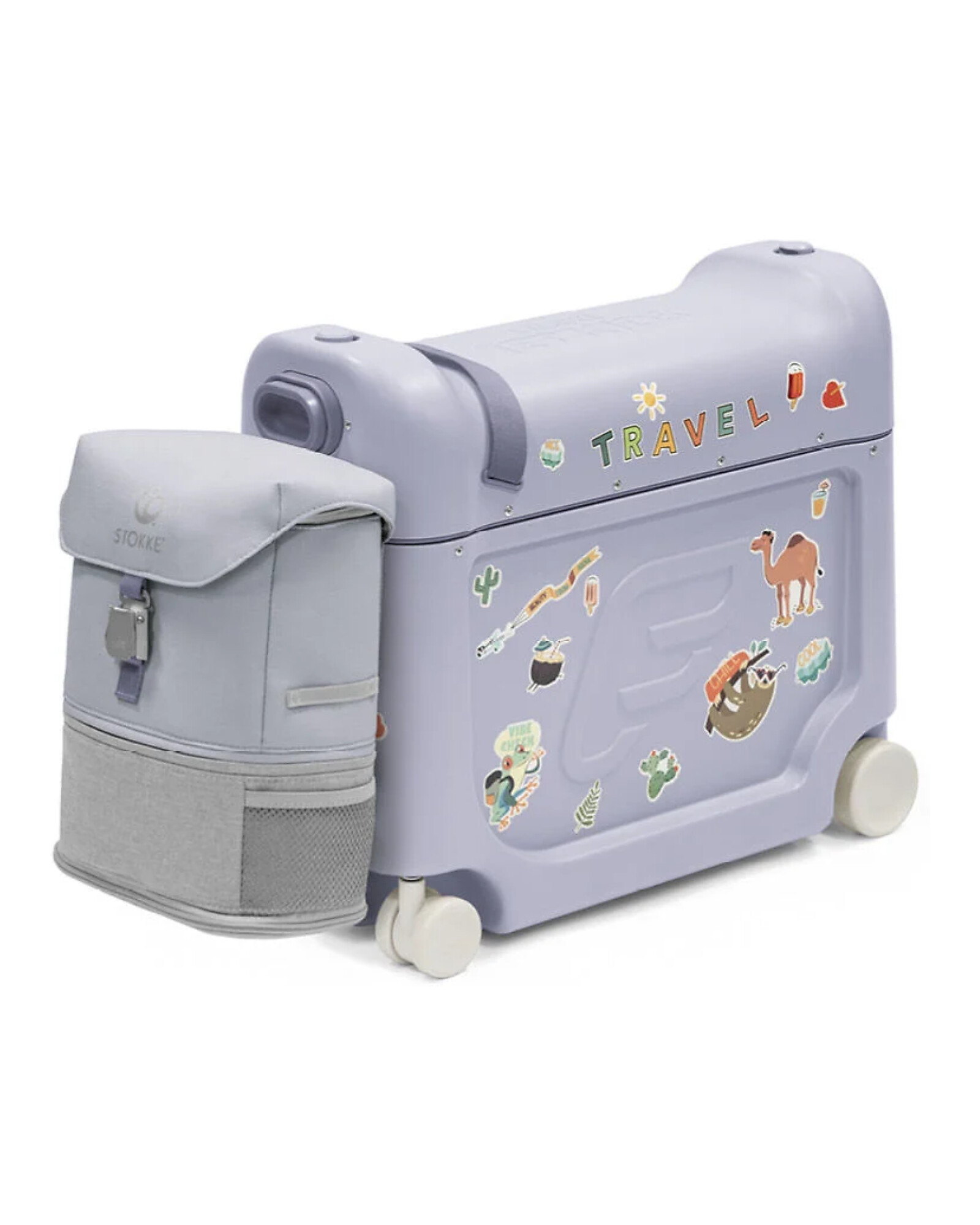 Il Set da viaggio JetKids di Stokke è composto da due accessori essenziali per i piccoli viaggiatori: la valigia-ride-on BedBox™ (che funge da bagaglio a mano, seduta su ruote e persino letto da viaggio) e lo zaino BackPack™, espandibile e pensato per esploratori da 2 a 7 anni.