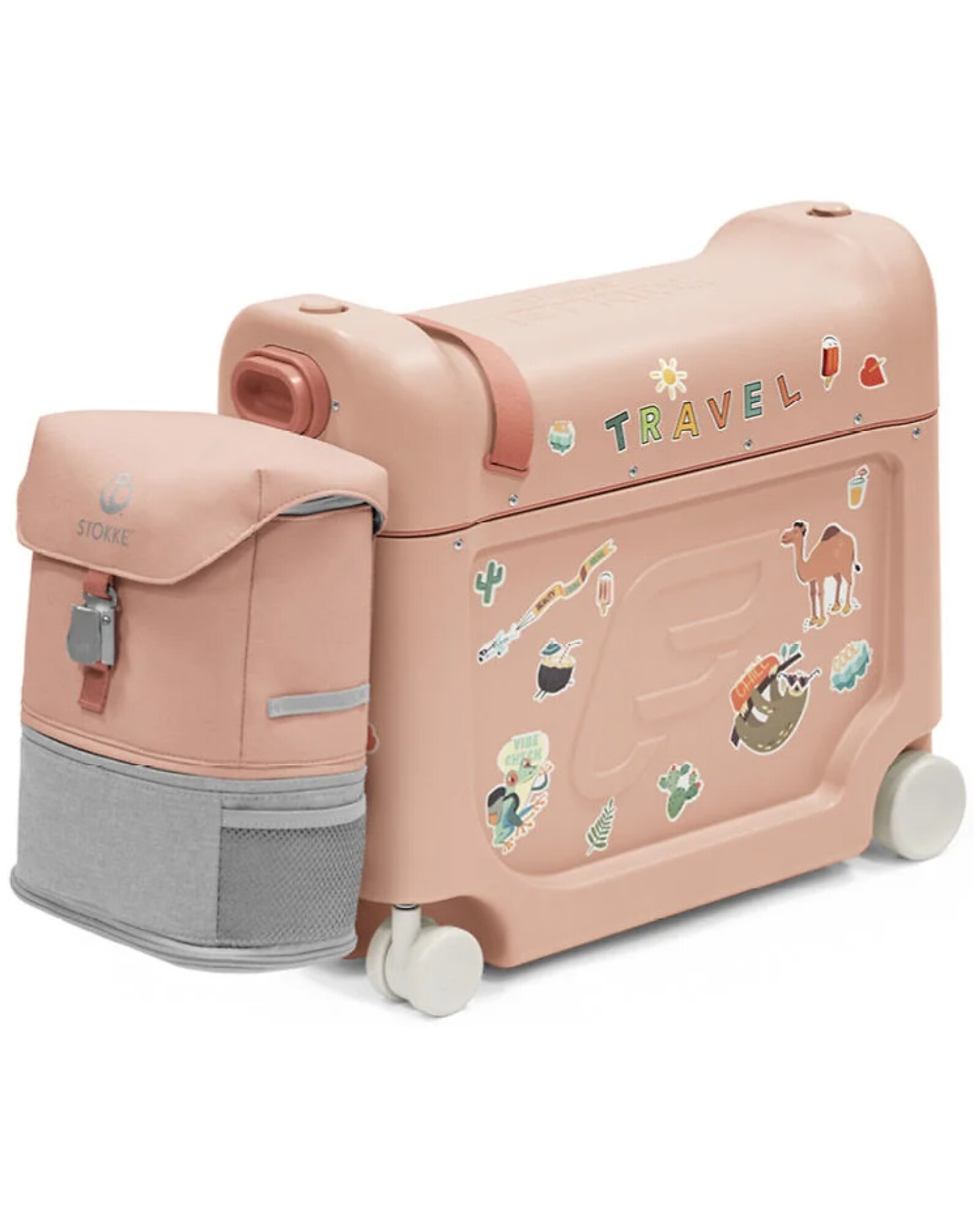 Il Set da viaggio JetKids di Stokke è composto da due accessori essenziali per i piccoli viaggiatori: la valigia-ride-on BedBox™ (che funge da bagaglio a mano, seduta su ruote e persino letto da viaggio) e lo zaino BackPack™, espandibile e pensato per esploratori da 2 a 7 anni.