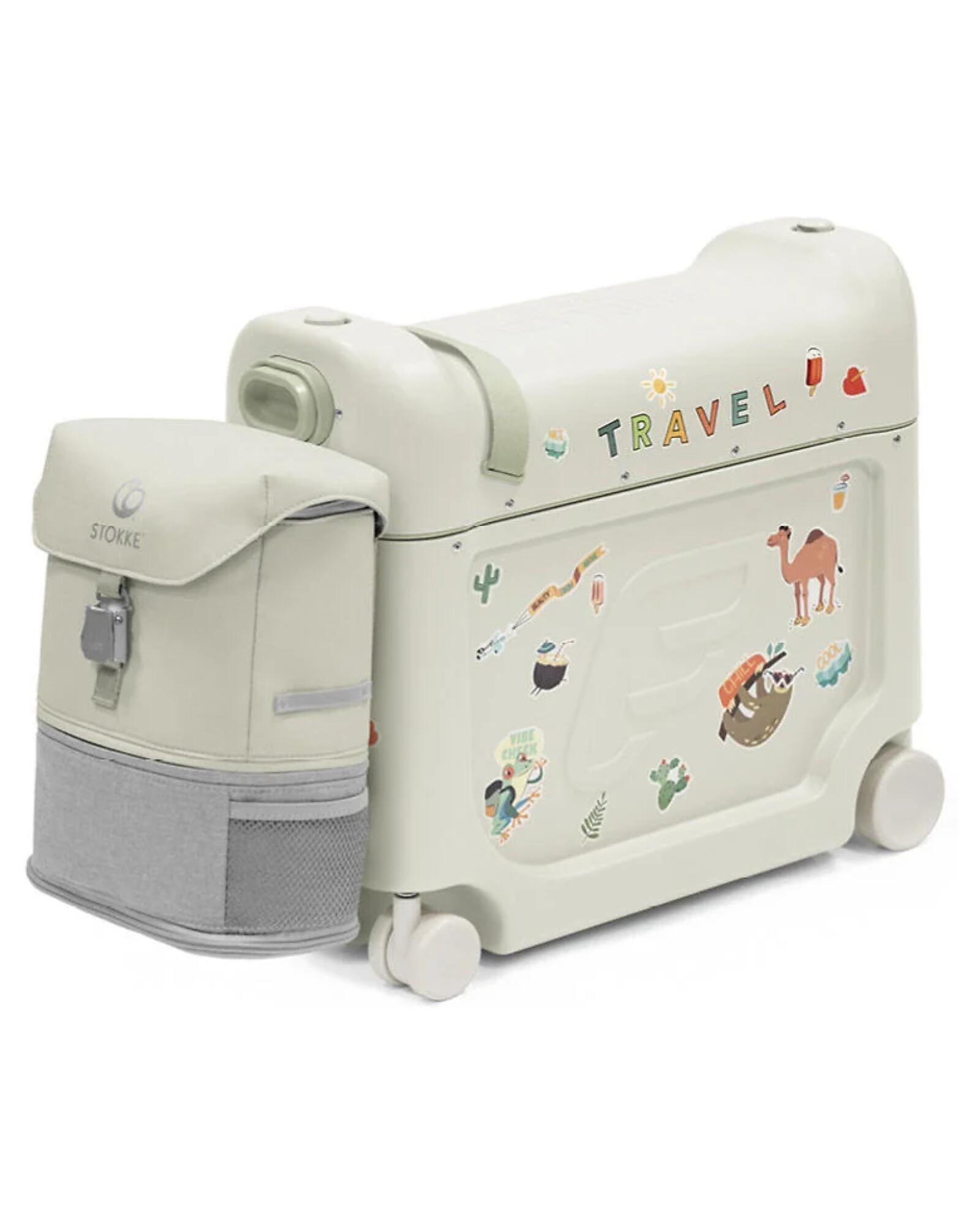 Il Set da viaggio JetKids di Stokke è composto da due accessori essenziali per i piccoli viaggiatori: la valigia-ride-on BedBox™ (che funge da bagaglio a mano, seduta su ruote e persino letto da viaggio) e lo zaino BackPack™, espandibile e pensato per esploratori da 2 a 7 anni.
