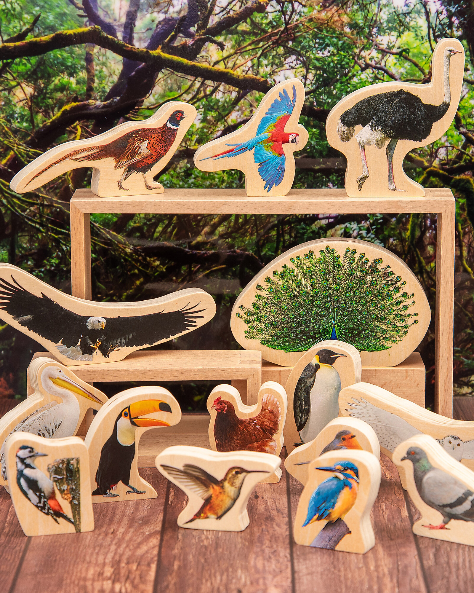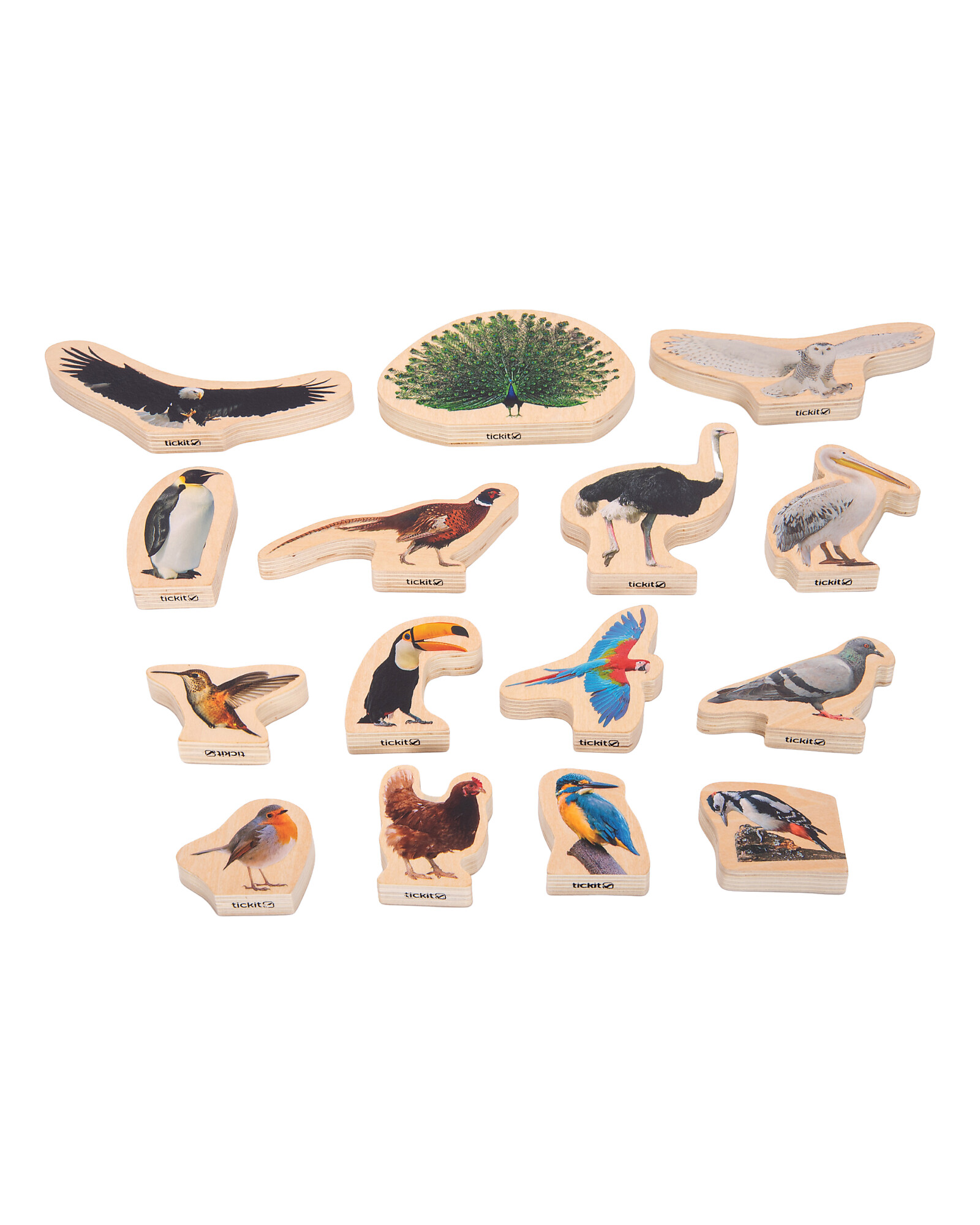Blocchi in Legno di Betulla FSC - Uccelli - 15 Pezzi - 0+