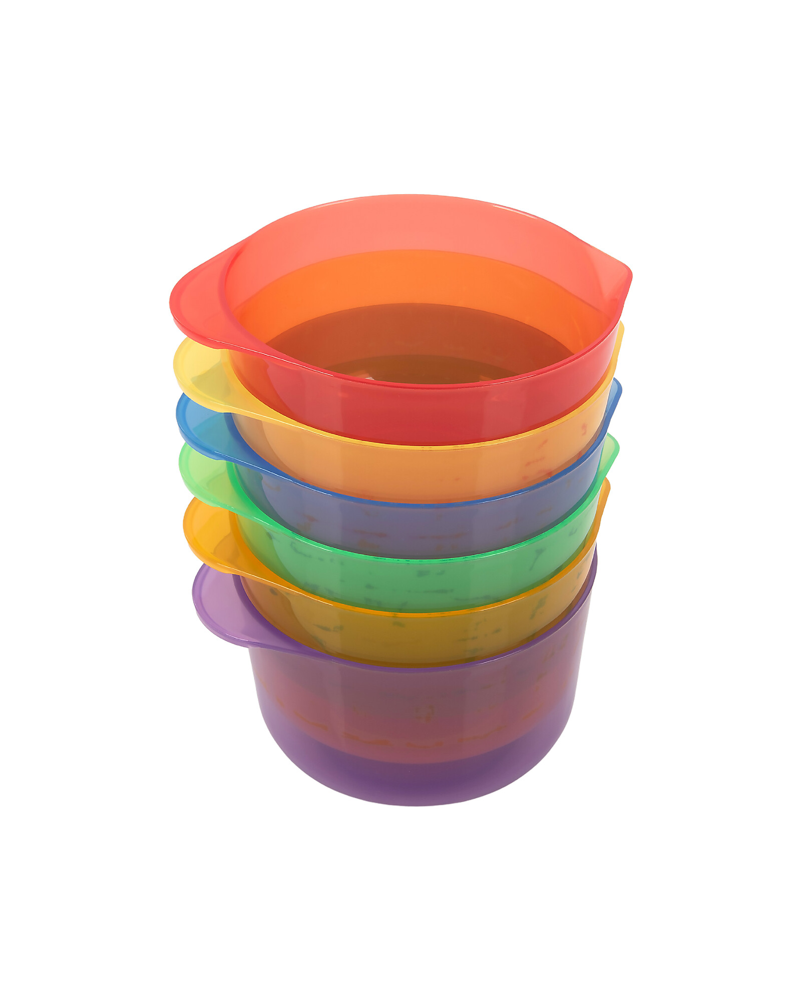 Introduci tuo figlio all'apprendimento pratico con queste ciotole profonde impilabili, progettate con un bordo per versare e un manico per un facile riempimento, inclinazione e versamento. Perfette per il gioco esplorativo con sabbia o acqua, sono anche un ottimo modo per introdurre il riconoscimento dei colori e i concetti di volume di base. Ogni ciotola contiene circa 750 ml.