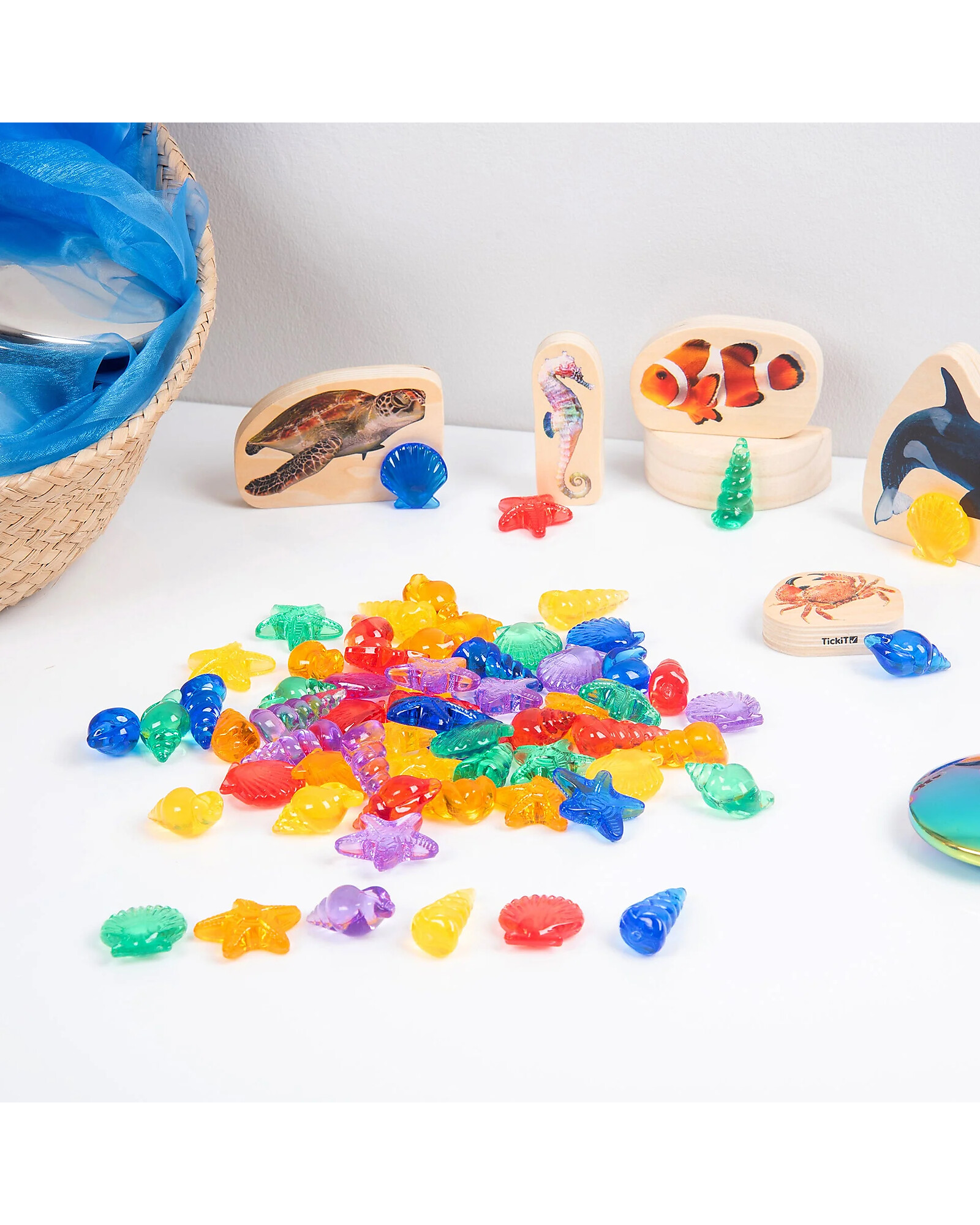 Avvicinati alla riva del mare con le conchiglie colorate traslucide di Tickit. Colorate e dettagliate, le nostre forme di conchiglia sono ideali per contare, ordinare, creare modelli o divertirsi con attività matematiche. Il tuo bambino può aggiungere, sottrarre, dividere o moltiplicare stelle marine, spirali, vongole o conchiglie. Le proprietà traslucide le rendono perfette per l'uso con un pannello luminoso, catturando l'immaginazione del tuo bambino ed esplorando i colori e i segni tattili su ogni forma.