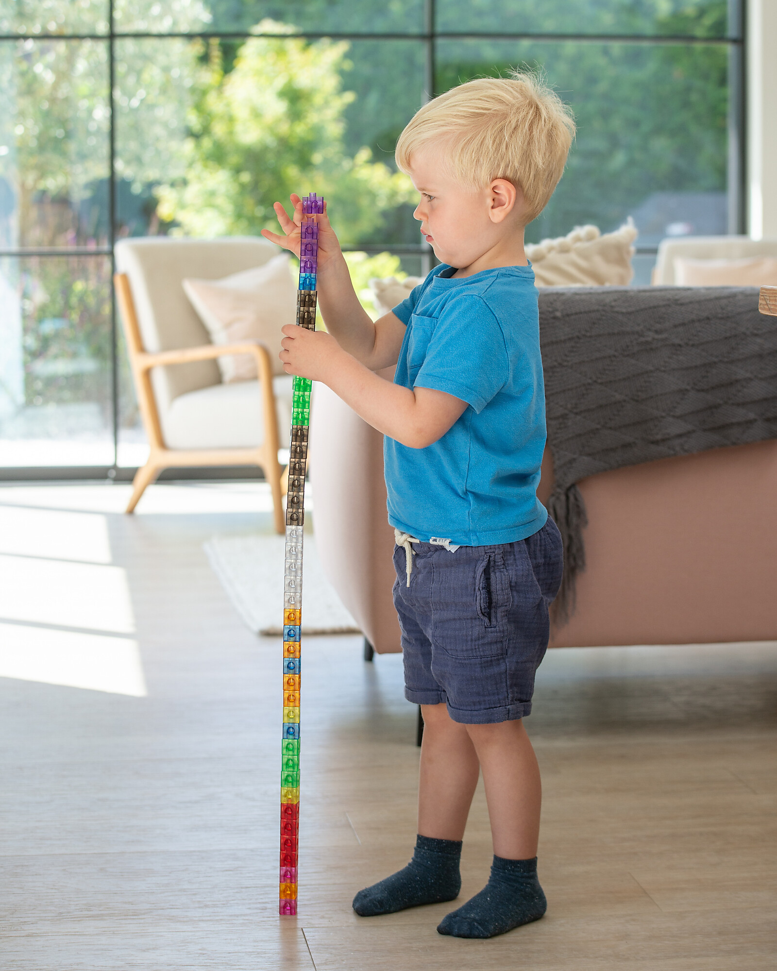 Guarda la creatività prendere forma con questi coloratissimi cubi collegabili che si agganciano con un soddisfacente scatto! Perfetti per impilarli a formare torri, costruire muri o disporli in infiniti motivi, sono ideali per contare, classificare e per il gioco creativo.