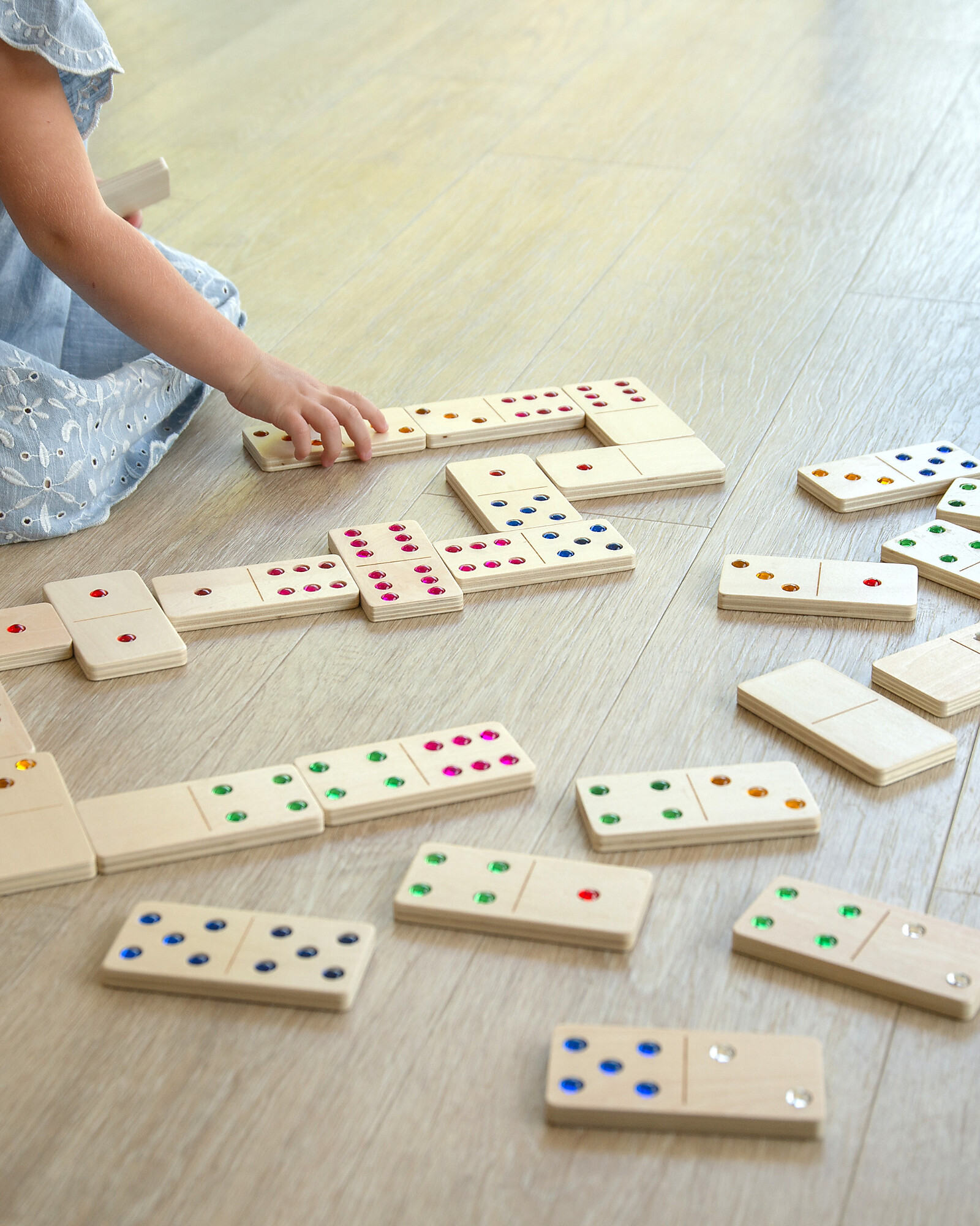 Perfetti per bambini di tutte le età e abilità, questi domino in compensato certificato FSC invitano a creare reazioni a catena tradizionali, abbinando le stesse combinazioni di gemme mentre i giocatori si alternano fino a quando l’ultimo pezzo cade al suo posto. Oltre al gioco classico, questi pezzi versatili offrono infinite opportunità di apprendimento: esercita le abilità di conteggio, esplora concetti semplici di addizione e sottrazione, oppure premili nella pasta da modellare per impressioni sensoriali soddisfacenti e un’esplorazione tattile.