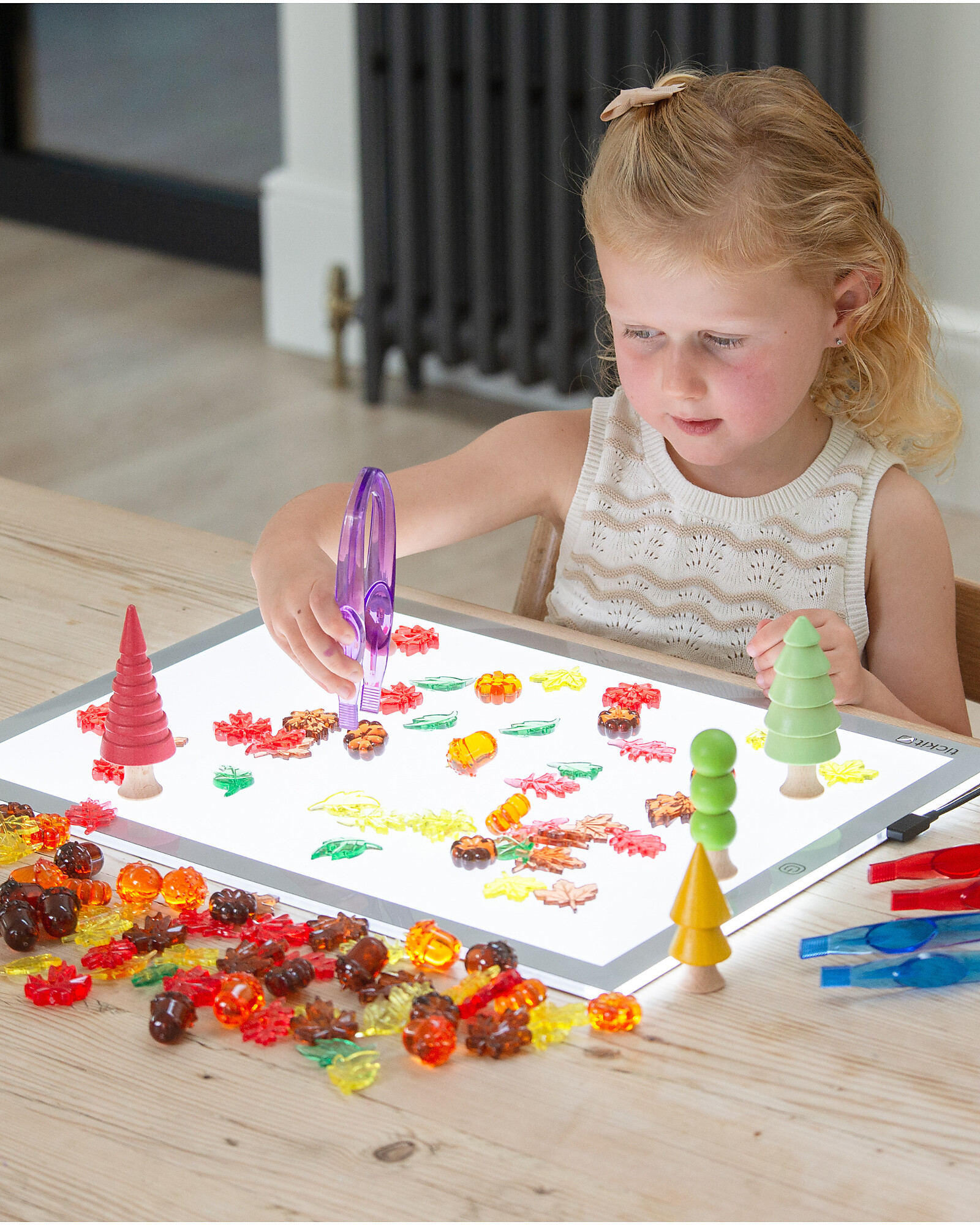 Il set Tickit di foglie e semi colorati è un'ottima risorsa per contare, ordinare, creare schemi e svolgere attività di matematica di base come somma, sottrazione, divisione e moltiplicazione. Le colorazioni autunnali traslucide lo rendono ideale da usare su un pannello luminoso, offrendo anche un elemento tattile grazie ai dettagli delle forme. Il set è compatibile con la nostra linea Translucent Colour Play, per un gioco che stimola la creatività e si adatta a molteplici attività di apprendimento. Include 6 varietà di foglie e semi (ghianda, zucca, foglia d'acero spessa, foglia d'acero sottile, foglia a 2 lobi, foglia a 3 lobi) in 5 colori (rosso, arancione, giallo, verde e marrone). Tutti gli elementi sono conservati in un pratico barattolo con coperchio, con un totale di 120 pezzi.