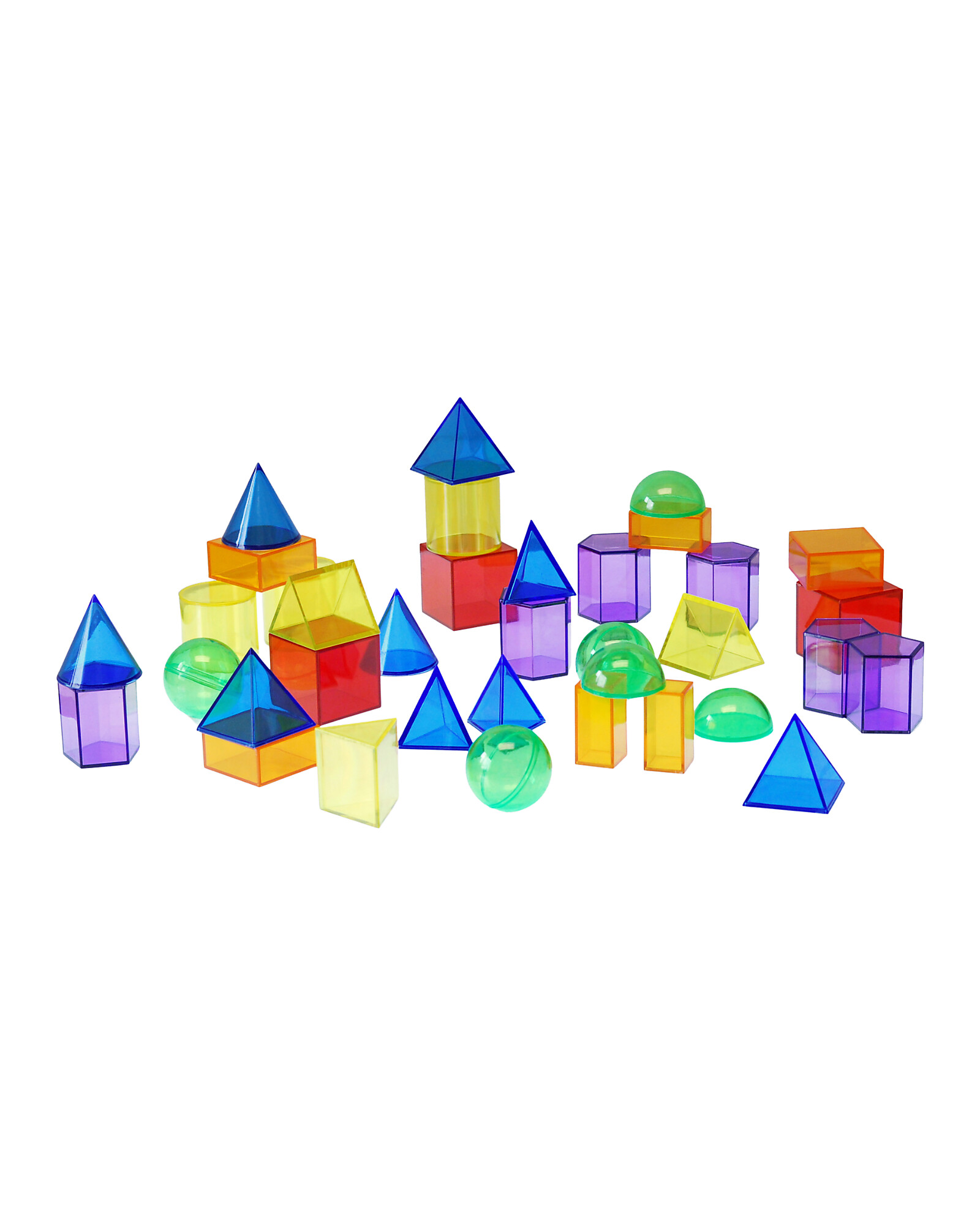 Le forme geometriche sagomate traslucide è un set di forme 3D acriliche colorate, perfette per l'uso su un pannello luminoso, per apprendere i nomi e le caratteristiche di diverse forme e per apprendere i colori e la miscelazione dei colori.