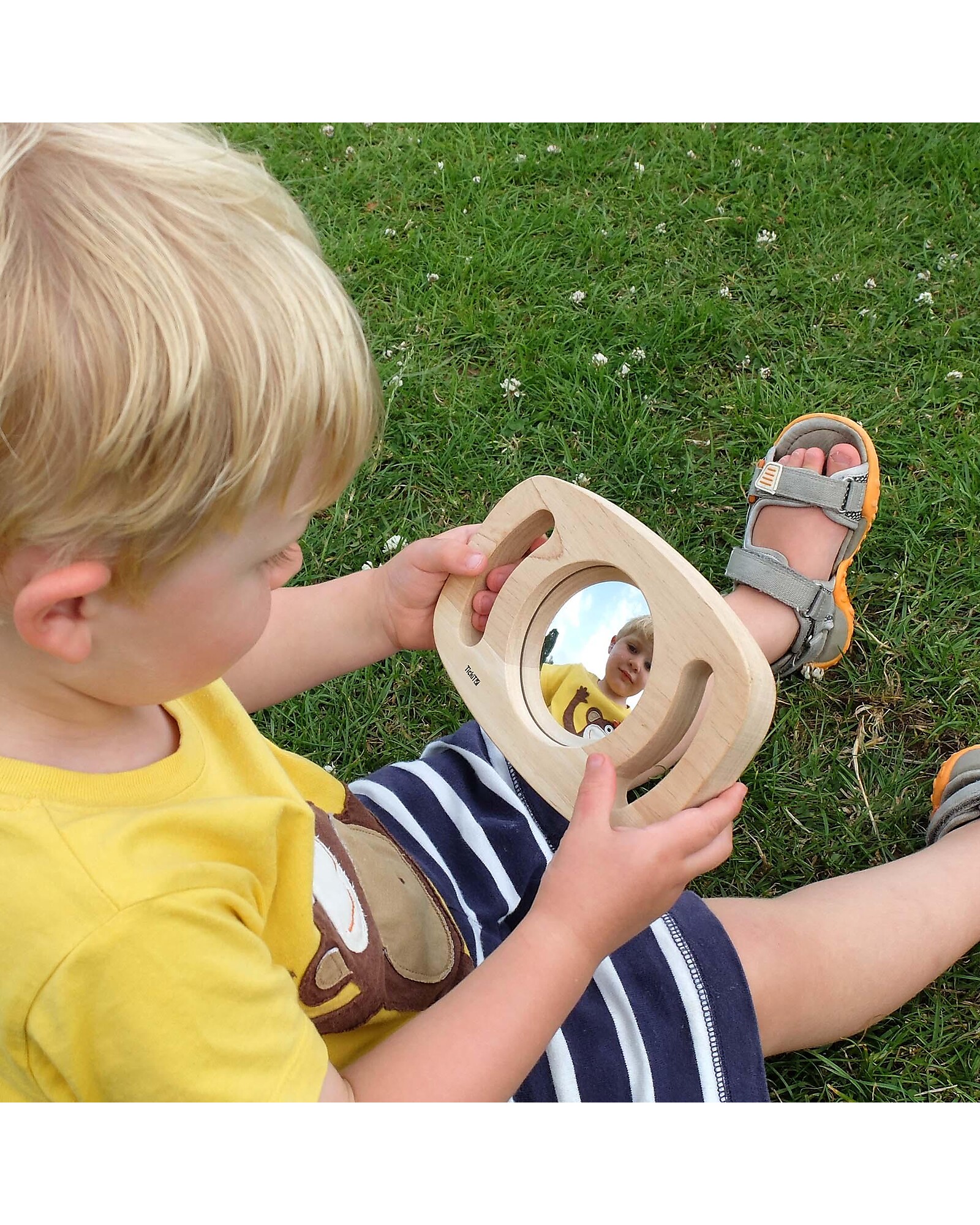 Il nostro specchio piano di tickit Easy Hold è una cornice in legno di caucciù massello facile da tenere con manici, che racchiude al centro uno specchio piano che aiuterà il tuo bambino a interagire con il mondo che lo circonda in un modo unico. Lo specchio produce riflessi affascinanti per accendere la curiosità del tuo bambino e supporta l'autoidentificazione.