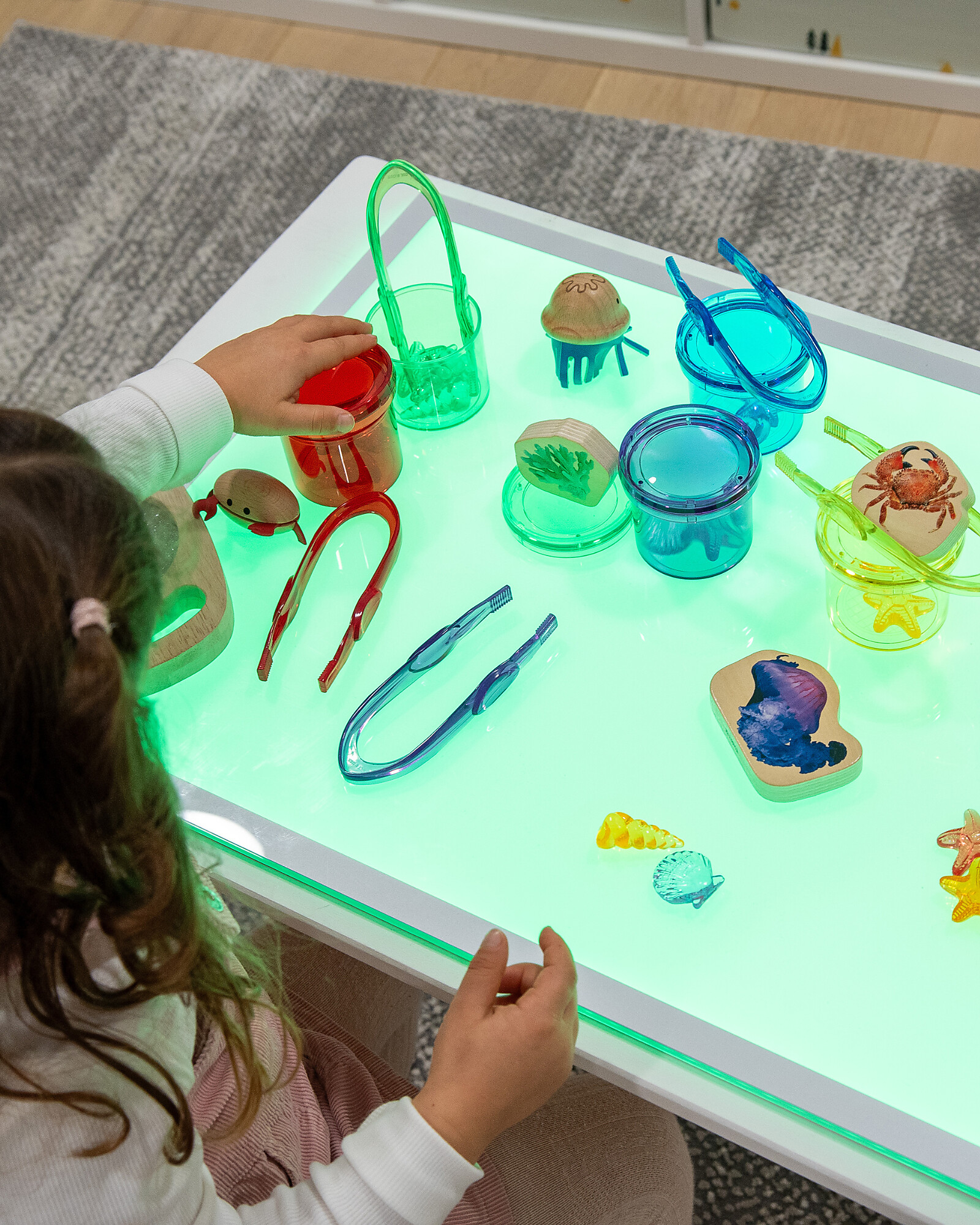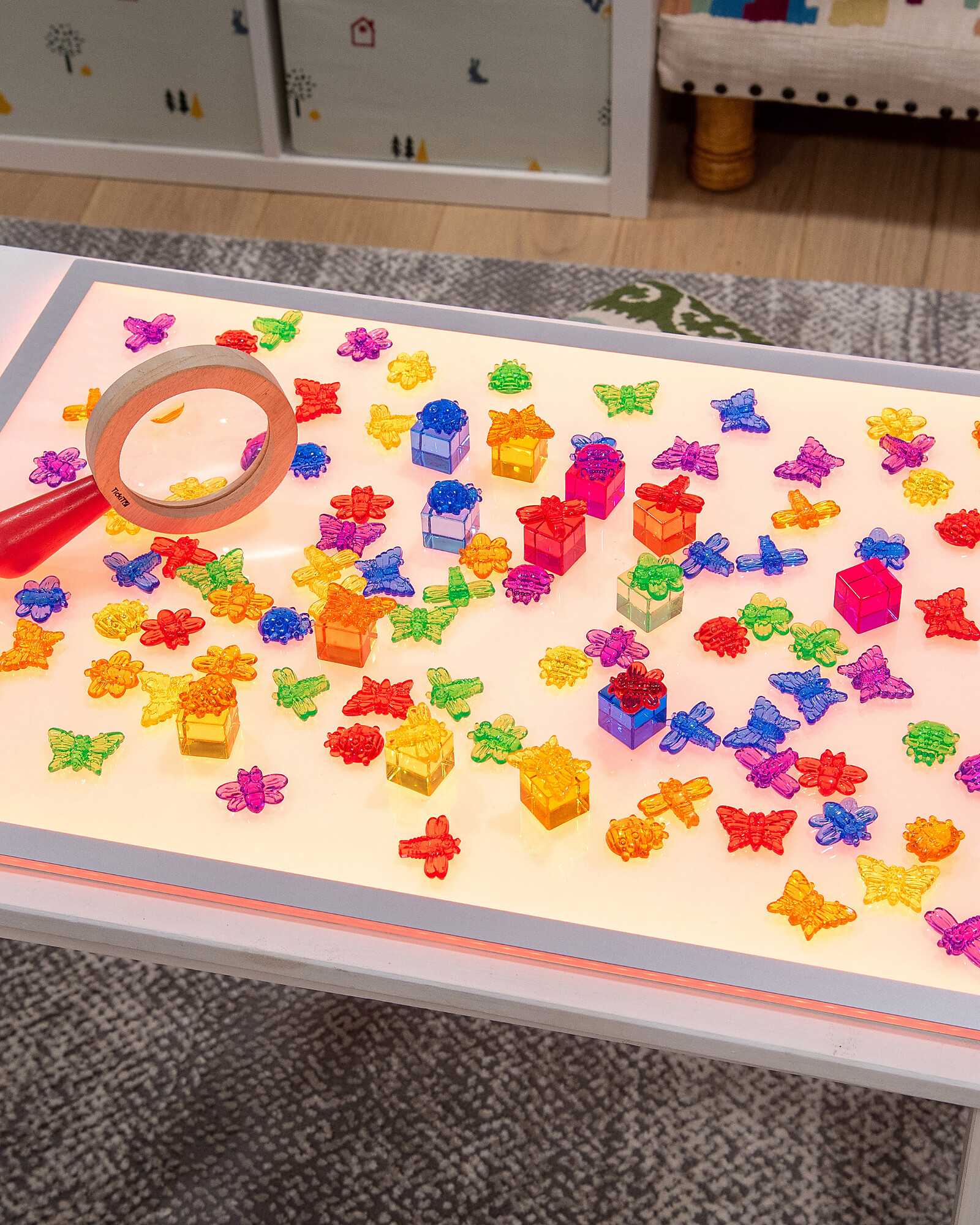 - Il set include: 1 pannello luminoso, un adattatore di alimentazione universale (compatibile UK/EU/US/AU) con alimentazione di rete a bassa tensione, istruzioni per l'uso e una guida alle attività del pannello luminoso TickiT