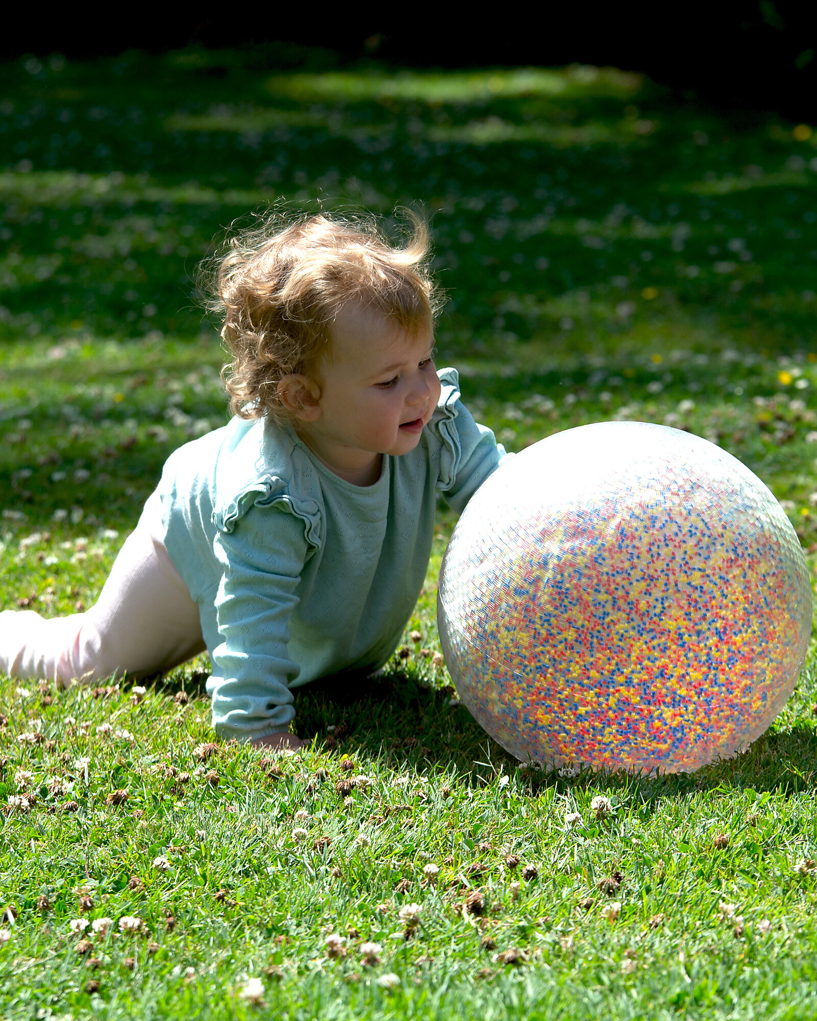 Questa palla bellissima e tattile contiene migliaia di minuscole perle di plastica colorate che tintinnano e danzano quando la palla viene fatta rotolare, creando stimoli visivi e audio che cattureranno l'interesse e l'immaginazione del tuo bambino.