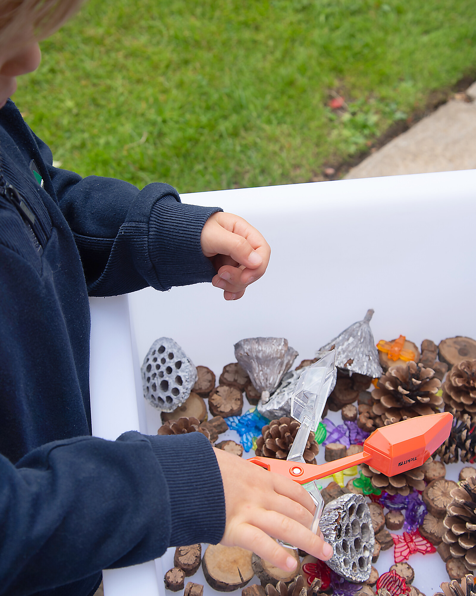 Le pinze tickit ® Rainbow sono della misura perfetta per le mani piccole. Sei pinze dai colori vivaci con manici a forbice possono essere utilizzate facilmente dal tuo bambino per raccogliere insetti, piante o materiali in modo sicuro per tenerli, esaminarli e trasportarli.
