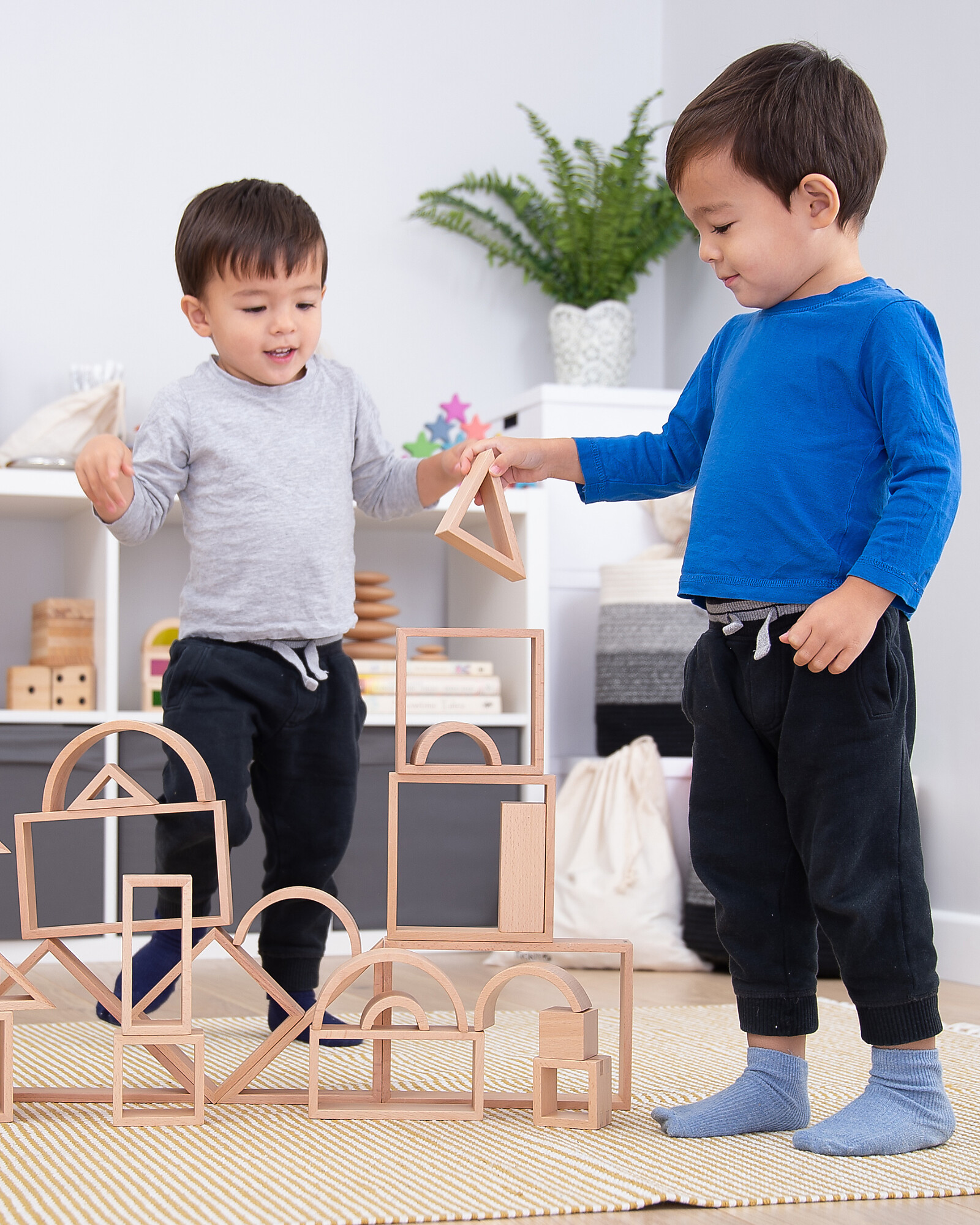 Realizzati in bellissimo legno di faggio massiccio liscio con una finitura con venature del legno naturali, questi set di forme permetteranno al tuo bambino di liberare la propria creatività e innovazione.