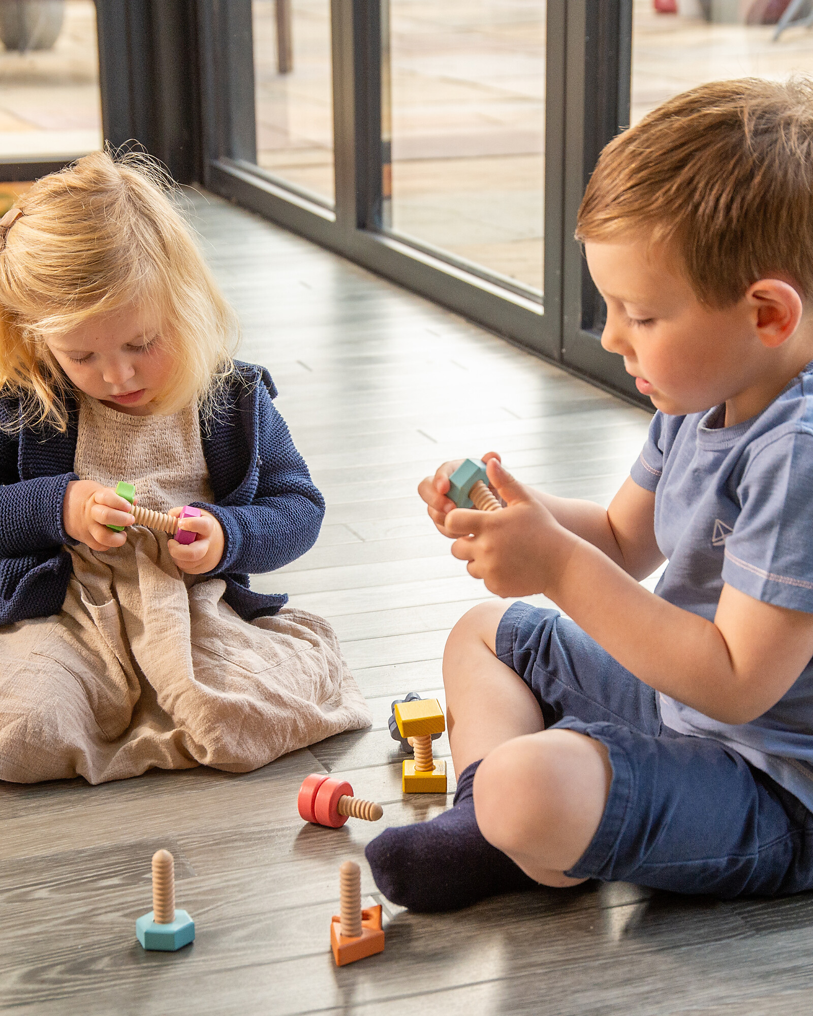 Set Gioco Dadi e Bulloni - Arcobaleno - 28 Pezzi - Legno di Faggio - da 12 Mesi
