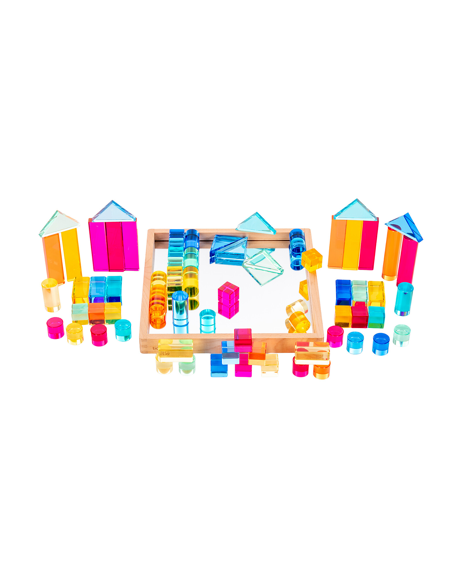 Set Gioco Vassoio con Specchio e Gemme in Sette Forme Diverse - 72 Pezzi - dai 3 Anni - Per Lavagna Luminosa