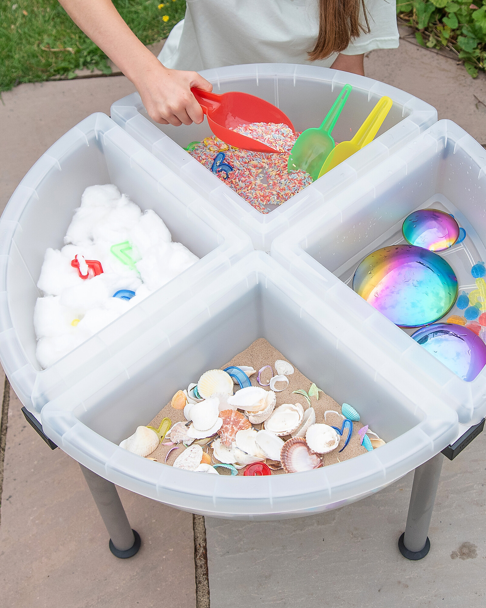 Trasforma ogni momento di gioco in un’esperienza di scoperta con questo sistema di vassoi Quadrant Discovery con supporto, progettato per stimolare l’esplorazione autonoma e l’apprendimento attraverso il gioco. Grazie ai 4 vassoi separati, è possibile organizzare facilmente sabbia, acqua, materiali naturali e strumenti creativi, mantenendo tutto ordinato e sempre a portata di mano.