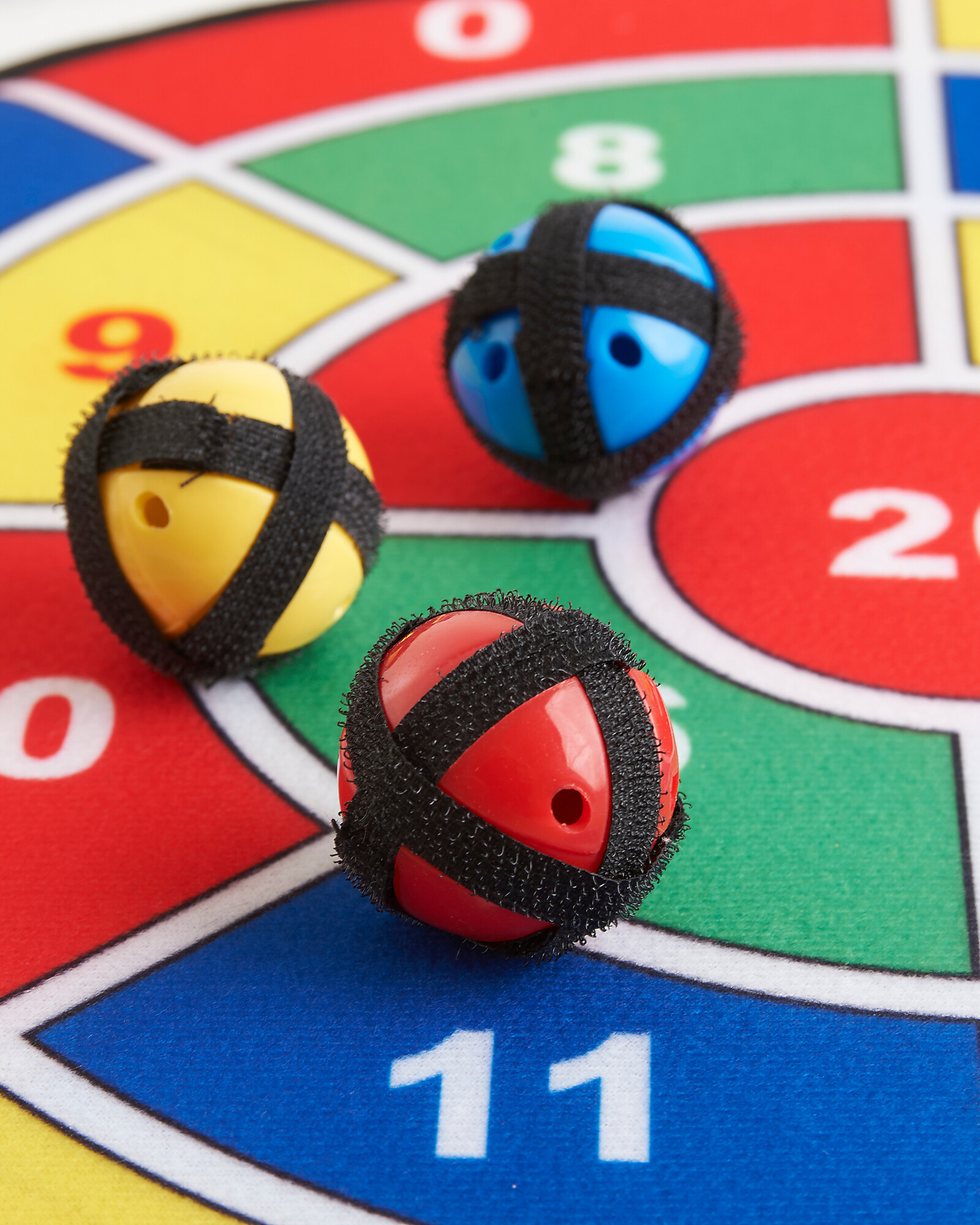 Utilizzando la chiusura a strappo, le palline si attaccano alle palline bersaglio rendendolo un modo divertente e coinvolgente per i bambini di imparare addizioni, sottrazioni e divisioni.